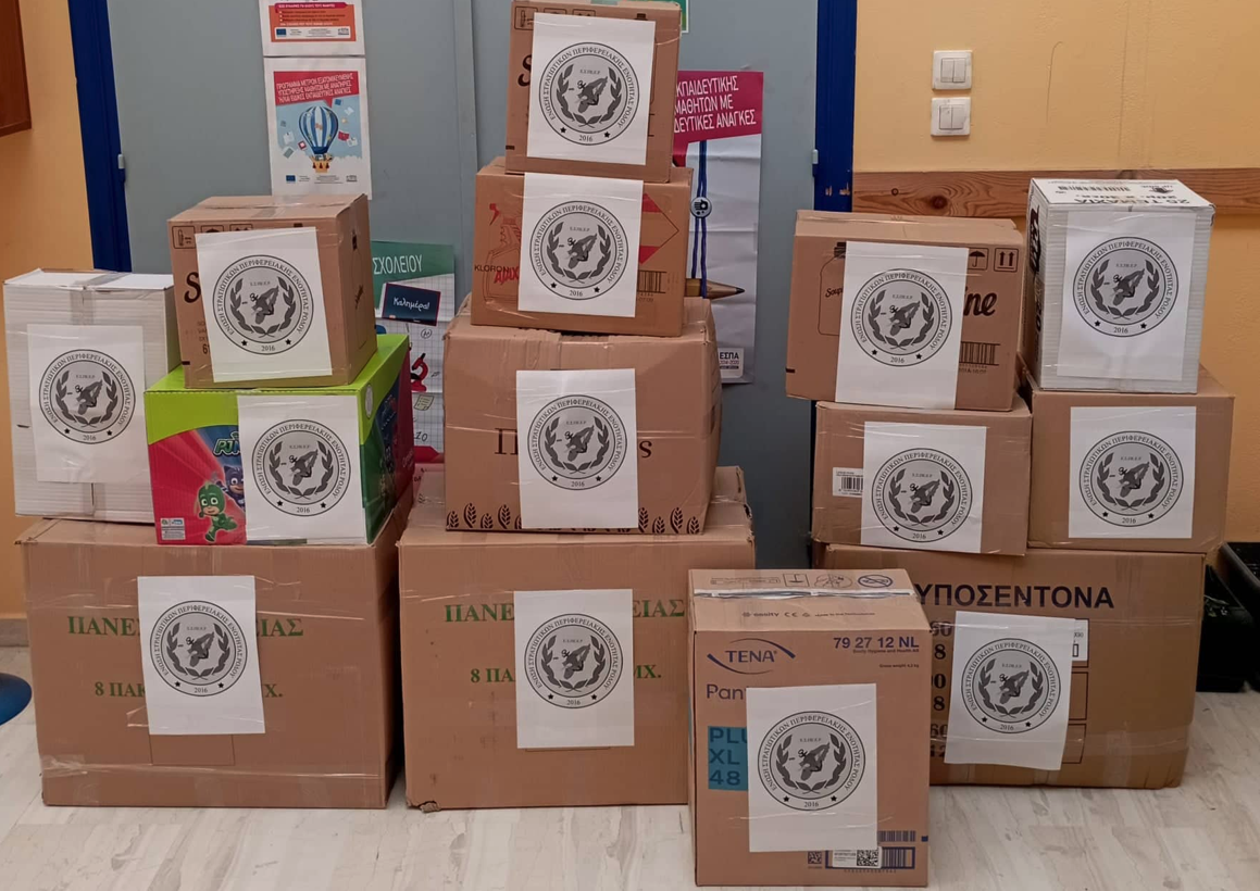 Τα είδη πρώτης ανάγκης συγκεντρώθηκαν από τα μέλη μας, επίσης, από τους Αντιπροσώπους και μέλη του ΔΣ της Ένωσης Στρατιωτικών Περιφερειακής Ενότητας Ρόδου.