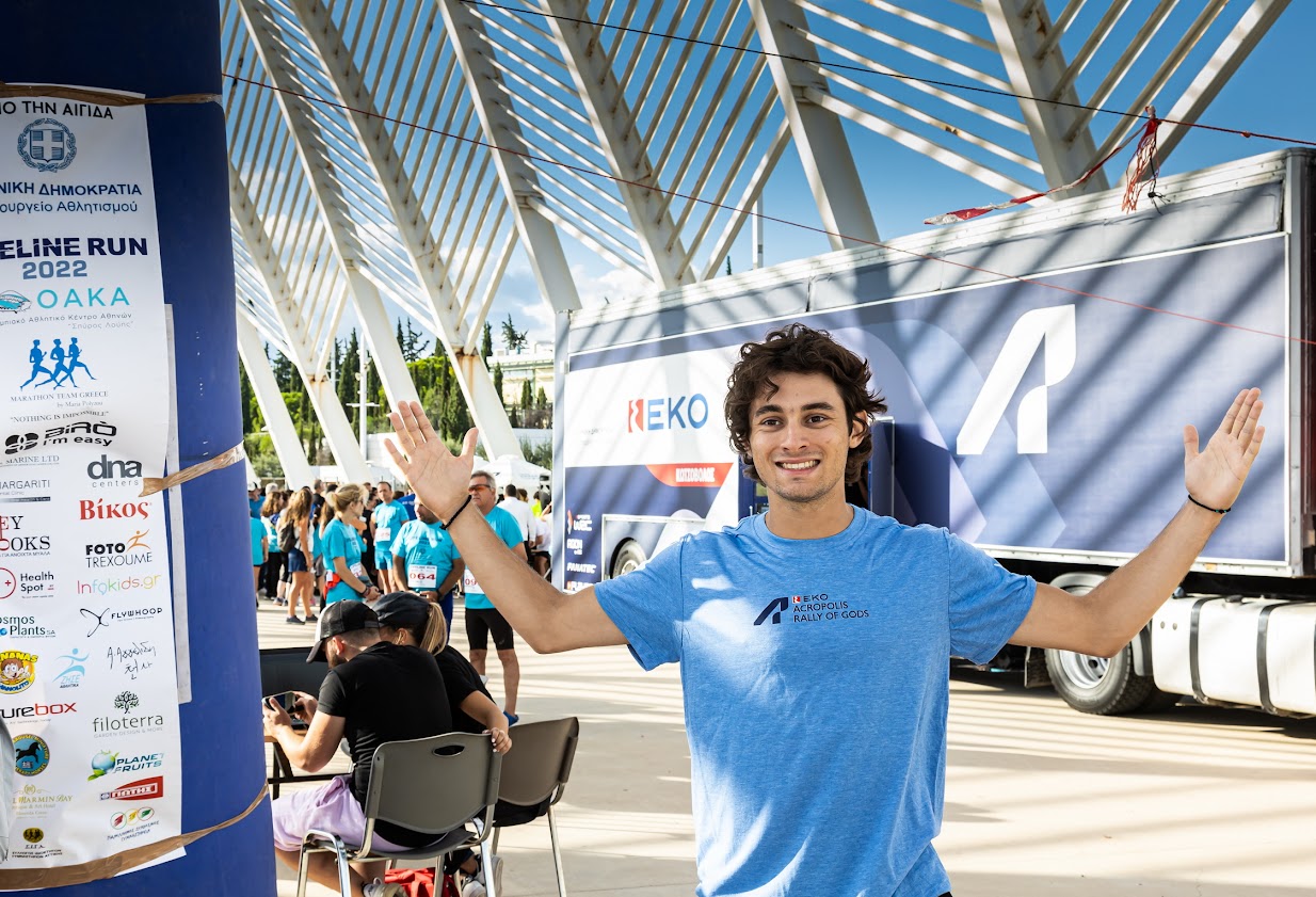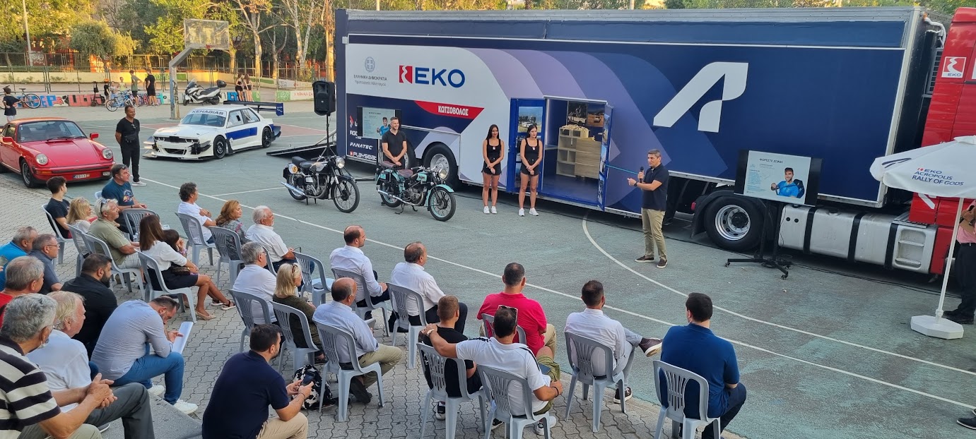 Η άφιξη του EKO Acropolis Rally Road Safety Truck στο ΟΑΚΑ, πέρα από την επικοινωνία μηνυμάτων Οδικής Ασφάλειας, που αποτελεί πρωταρχικό στόχο του Υφυπουργείου Αθλητισμού, το οποίο διοργανώνει τον αγώνα, συνδυάστηκε με την παρουσία του και… σε αγώνα δρόμου.
