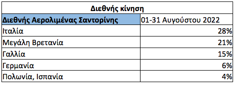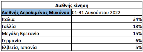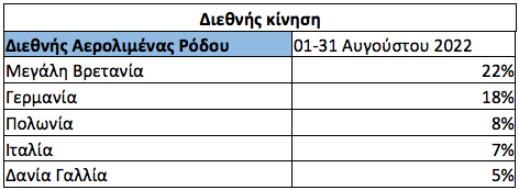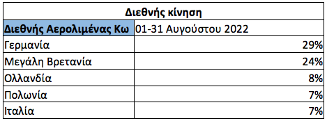 Στους πίνακες που ακολουθούν, οι κορυφαίες πέντε αγορές ανά προορισμό για τον Αύγουστο του 2022: