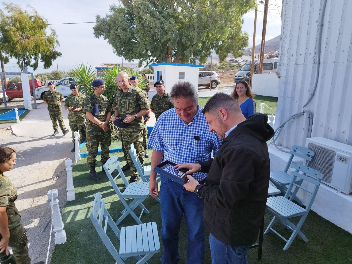 Σε ένα θερμό κλίμα ο Δήμαρχος της Η.Ν. Κάσου Μιχαλης Ερωτόκριτος αφού καλωσόρισε και ευχαρίστησε τον Υφυπουργό για την επίσκεψη του στην ακριτική Η.Ν.Κάσο τόνισε την αμφίδρομη άριστη και αραγή σχέση μεταξύ Στρατού και Δήμου σε τοπικό επίπεδο.