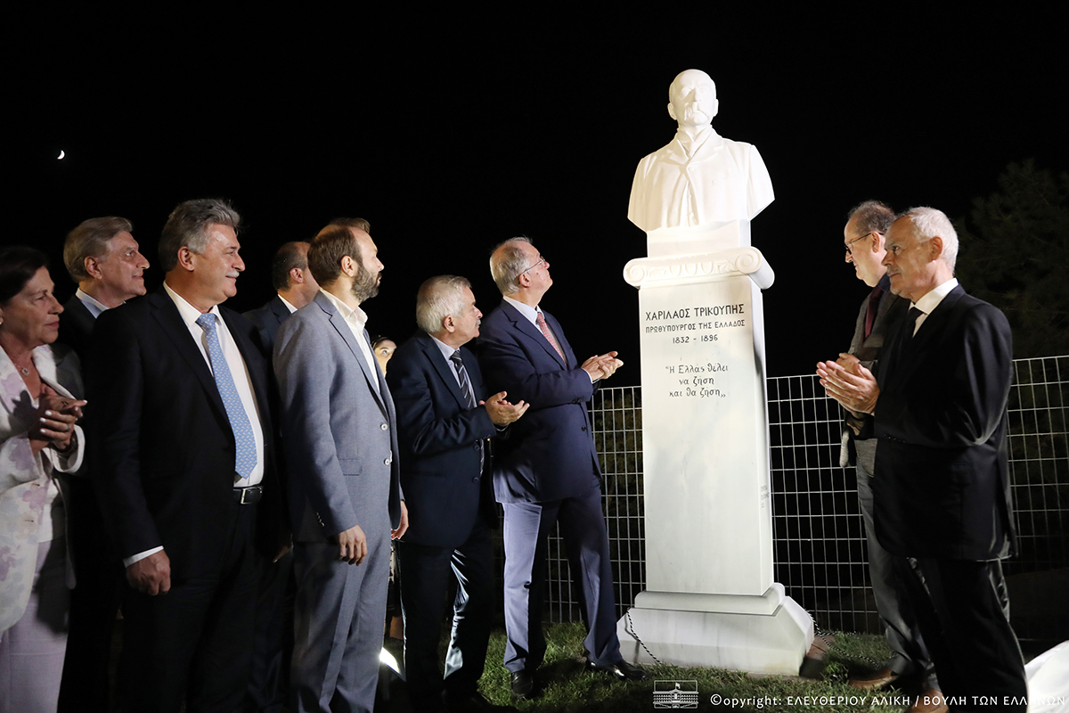 Τα αποκαλυπτήρια της προτομής του Χαρίλαου Τρικούπη, ο οποίος διετέλεσε επτά φορές πρωθυπουργός της Ελλάδας και πραγματοποίησε, το καινοτόμο για την εποχή του έργο της διάνοιξης της Διώρυγας της Κορίνθου, έκανε το απόγευμα του Σαββάτου ο Πρόεδρος της Βουλής κ. Κωνσταντίνος Τασούλας.