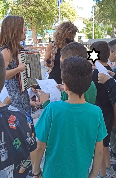 Η Γ’ και η Δ’ τραγούδησαν με τη συνοδεία του ακορντεόν που έπαιζε η μουσικός του Σχολείου κ. Λεφάκη το τραγούδι :
