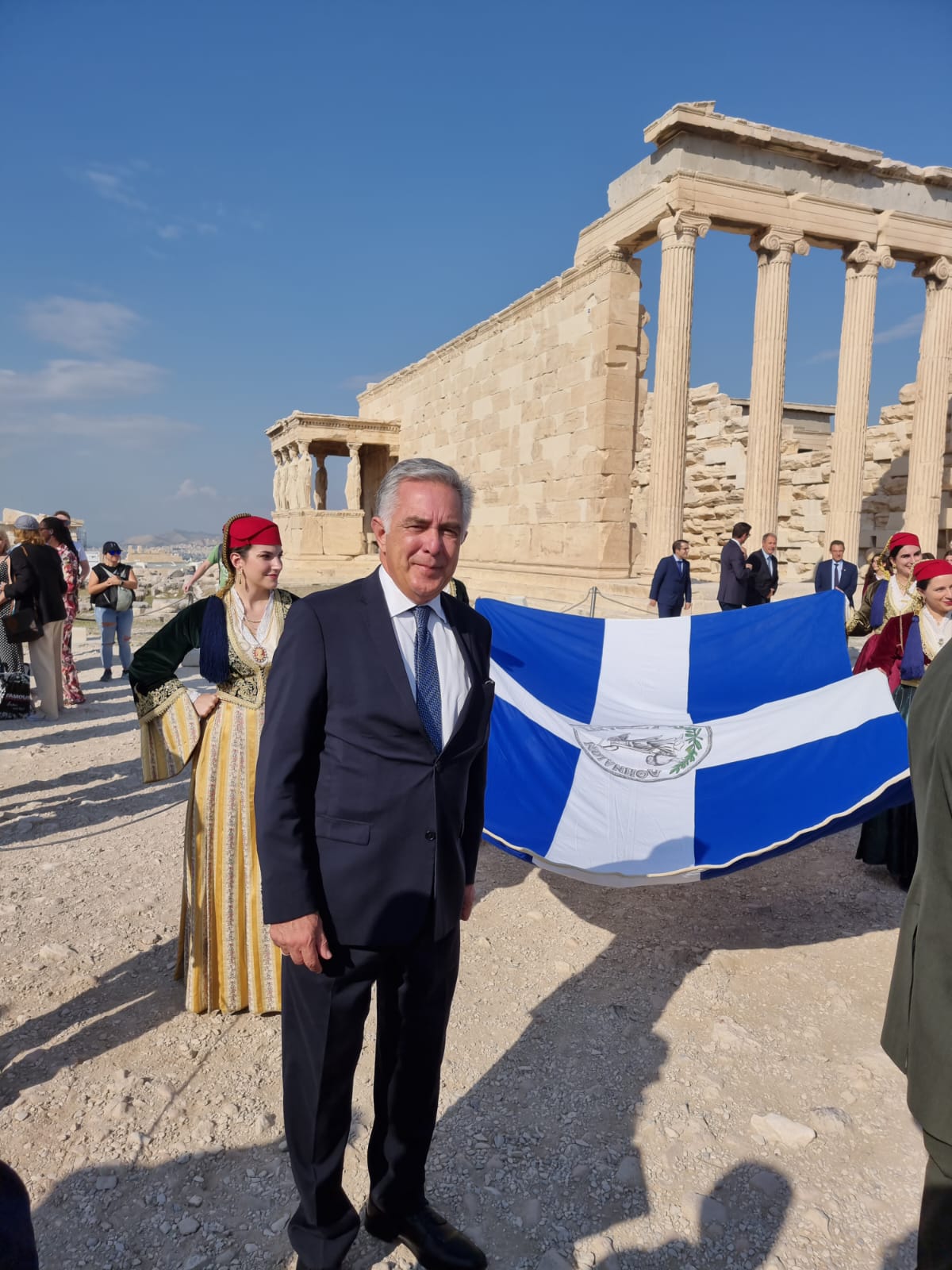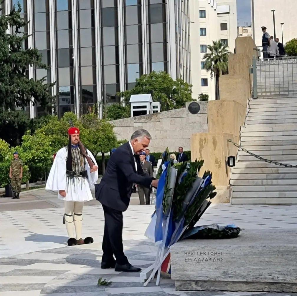Συγκεκριμένα παρέστη με τον υφυπουργό Παιδείας κ. Άγγελο Συρίγο, τον Δήμαρχο Αθηναίων κ. Κώστα Μπακογιάννη, τον Περιφερειάρχη Αττικής κ. Γιώργο Πατούλη και άλλους εκπρόσωπος των πολιτικών και στρατιωτικών αρχών στην έπαρση της σημαίας στον Ιερό Βράχο της Ακροπόλεως και κατέθεσε στεφάνι στον Άγνωστο Στρατιώτη.