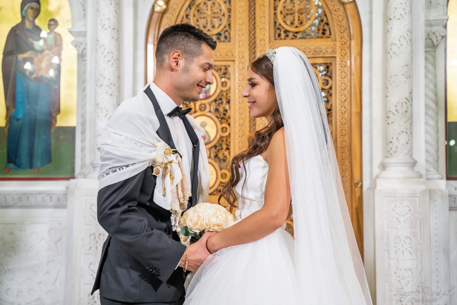 Ο Σεβ. Μητροπολίτης Καρπάθου-Κάσου κ.κ. Αμβρόσιος, ο Αρχ. Αμβρόσιος Μαναρουλάς ευλόγησαν τα στέφανα.