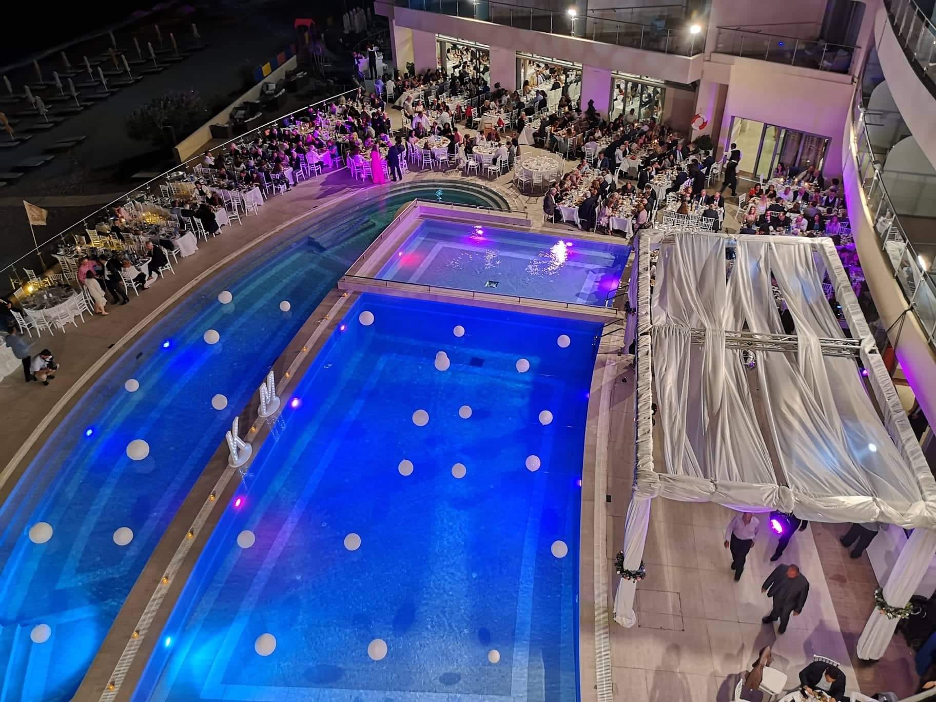 Της τελετής ακολούθησε μια υπέρλαμπρη δεξίωση στο Ξεν. Konstantinos Palace, ιδιοκτησίας Φελλουζή, όπου δεξιώθηκαν 1500 άτομα.