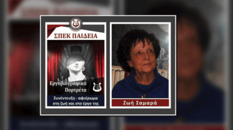 Το Δ.Σ. του Συμβούλιο του Συνδέσμου Πολιτισμού Ελλάδας Κύπρου, τιμά τη Ζωή Σαμαρά, Ομότιμη Καθηγήτρια Θεωρίας της Λογοτεχνίας και του Θεάτρου, της Φιλοσοφικής Σχολής του Αριστοτελείου Πανεπιστημίου Θεσσαλονίκης, Ιδρυτικό Μέλος ΣΠΕΚ και Επίτιμη Πρόεδρο του Τομέα Γραμμάτων του ΣΠΕΚ και την ευγνωμονεί για την αδιάκοπη προσφορά της στην Επιστήμη, στα Γράμματα, στην Παιδεία, στον Πολιτισμό, στον Ανθρωπισμό, στην Κοινωνία και στην Έρευνα και καταγράφει το εργοβιογραφικό της πορτρέτο μέσα από την παρούσα συνέντευξη.