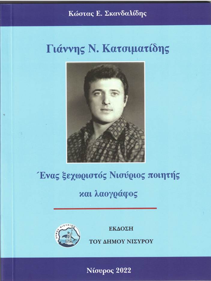 Το βιβλίο έχει τίτλο: Γιάννης Ν. Κατσιματίδης-Ένας Ξεχωριστός Νισύριος Ποιητής Και Λαογράφος.– Αναφέρεται στη ζωή και στο έργο του Γιάννη Κατσιματίδη και τη συγγραφή του υπογράφει ο καταξιωμένος συγγραφέας Κώστας Ε. Σκανδαλίδης. Ένας συγγραφέας με σπουδαίες εκδόσεις στο ενεργητικό του, με ρίζες από τη Νίσυρο, που προσέγγισε με σεβασμό και ιδιαίτερη εκτίμηση το σκεπτικό και τη φιλοσοφία του αείμνηστου Γιάννη.