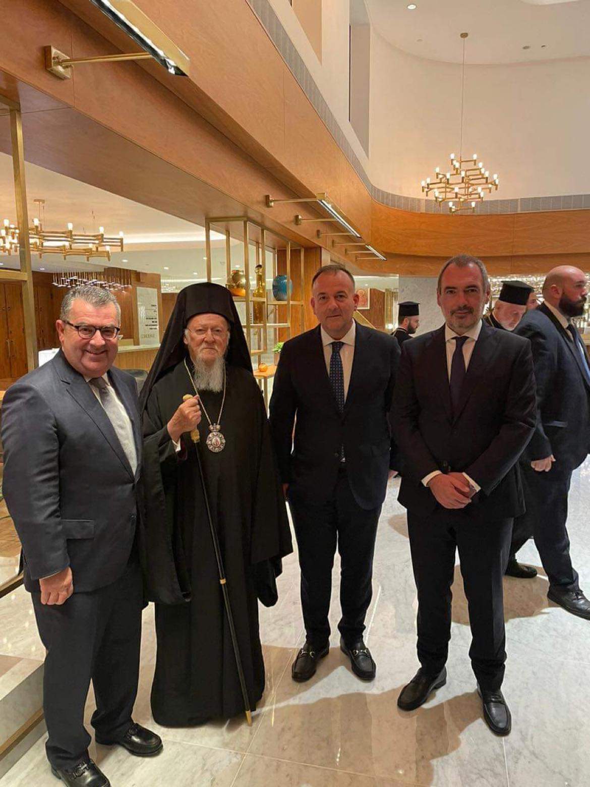 Επίσης, έδωσε το παρών και στο επίσημο δείπνο που διοργανώθηκε από τον Σύλλογο Θυάτειρα, παρουσία της Αυτού Θειοτάτης Παναγιότητος, του Οικουμενικού Πατριάρχη, κ. Βαρθολομαίου, του Σεβασμιωτάτου Αρχιεπισκόπου Θυατείρων και Μεγάλης Βρετανίας, κ. Νικήτα και του Σεβασμιωτάτου Αρχιεπισκόπου Αμερικής, κ. Ελπιδοφόρου.