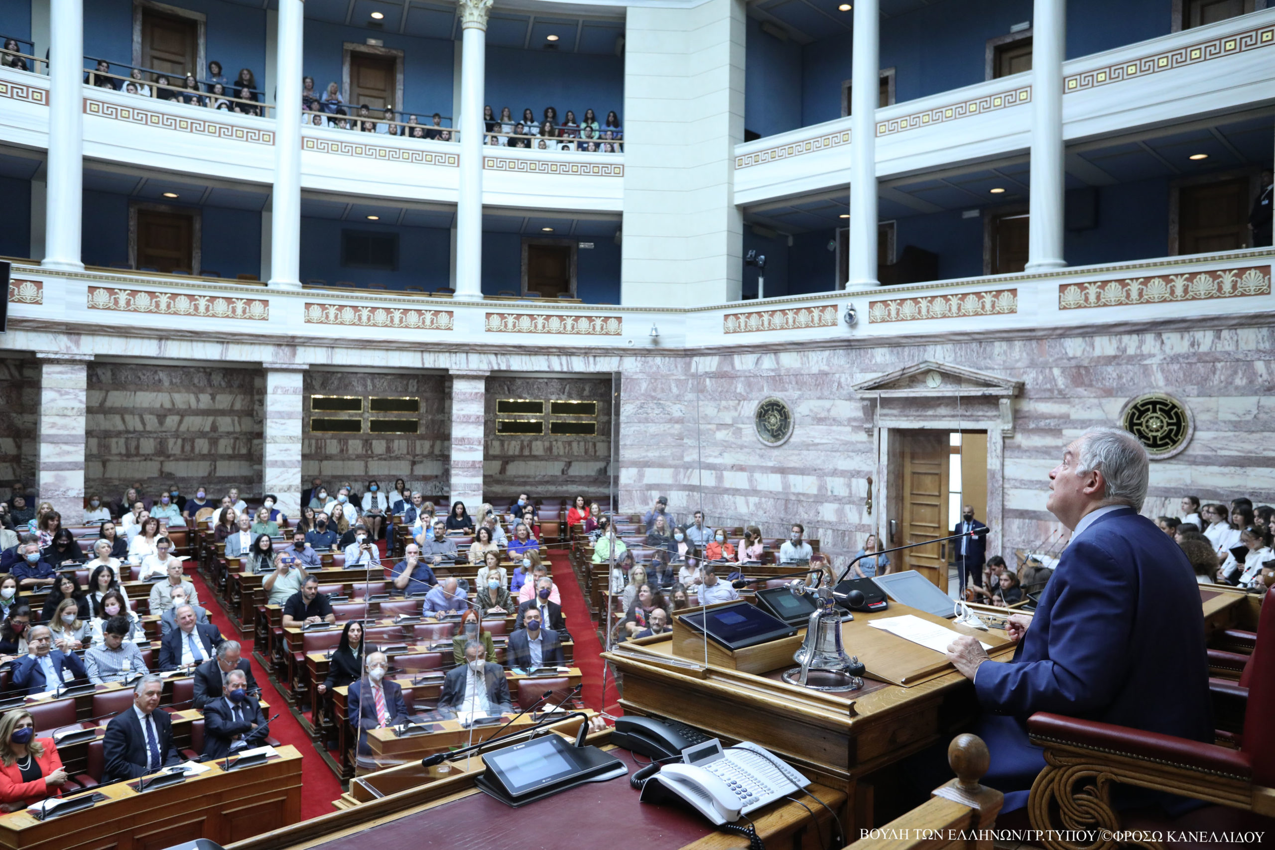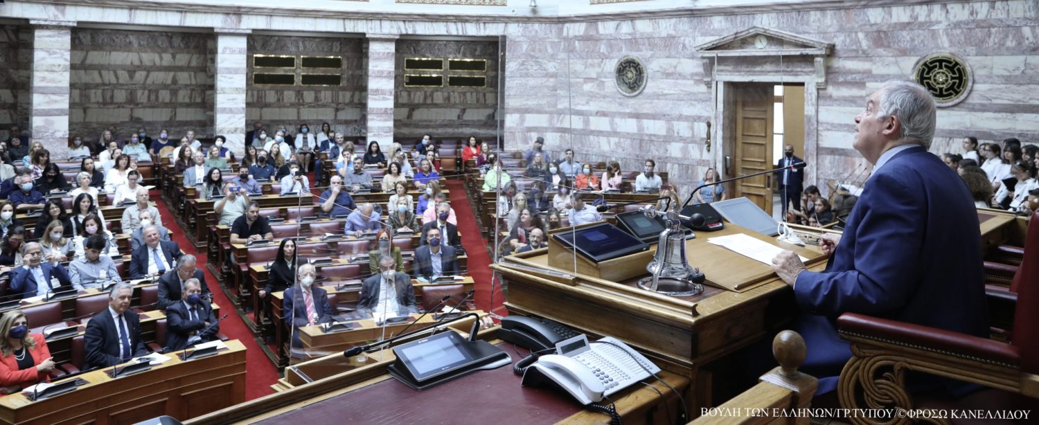 Στην εκδήλωση παραβρέθηκαν ο Πρόεδρος της Βουλής κ. Κωνσταντίνος Τασούλας, οι Αντιπρόεδροι της Βουλής κύριοι Νικήτας Κακλαμάνης, Αθανάσιος Μπούρας, Χαράλαμπος Αθανασίου, Θεόδωρος Δρίτσας, Απόστολος Αβδελάς και η κυρία Σοφία Σακοράφα, οι πρώην Πρόεδροι της Βουλής κ. Απόστολος Κακλαμάνης και κ. Νικόλαος Βούτσης, εκπρόσωποι κομμάτων, βουλευτές, ο Ειδικός Γραμματέας της Βουλής κ. Βασίλειος Μπαγιώκος και εργαζόμενοι του Κοινοβουλίου.