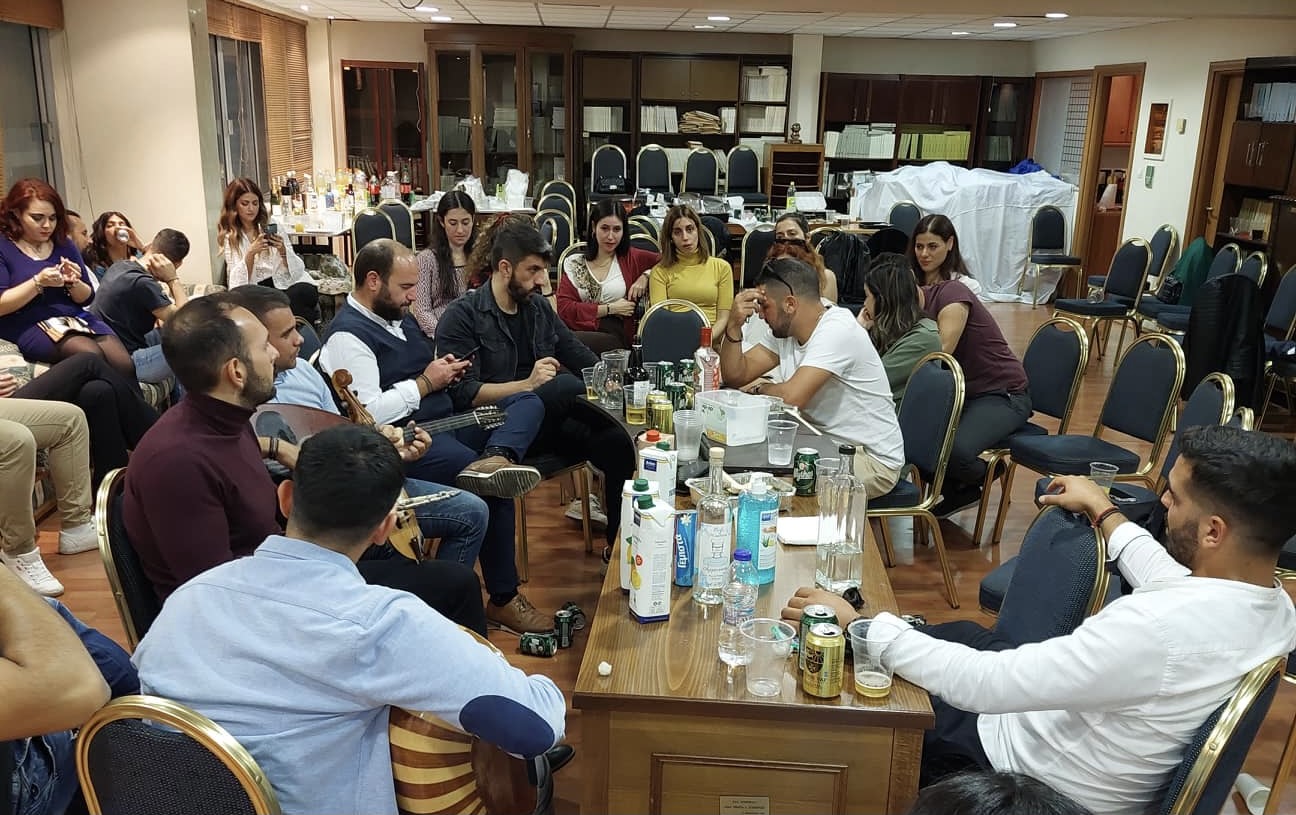 Το γλέντι μας ξεκίνησε γύρω στις 3μ.μ. καθώς χρειάστηκε οι νέοι και νέες μας να μπορέσουν να ετοιμαστούν και να ξεκουραστούν, καθώς συμμετείχαν με την Ομοσπονδία Δωδ/κων Σωματείων στην παρέλαση.
