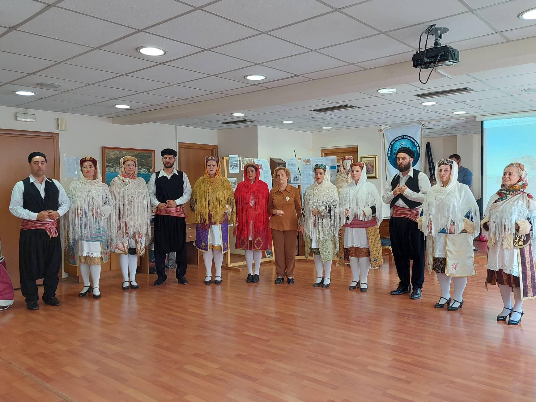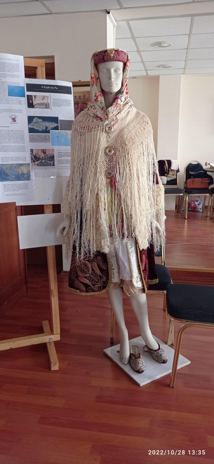 Μπροστά στην «πίστα» βρισκόταν φωτογραφικό και έγγραφο υλικό για την ιστορία τόσο του Καστελλόριζου, όσο και του Συνδέσμου Καστελλοριζίων που το 2023 κλείνει 100 χρόνια από την ίδρυση του, καθώς και μια κούκλα ντυμένη με την παραδοσιακή φορεσιά της γυναίκας του Καστελλορίζου.