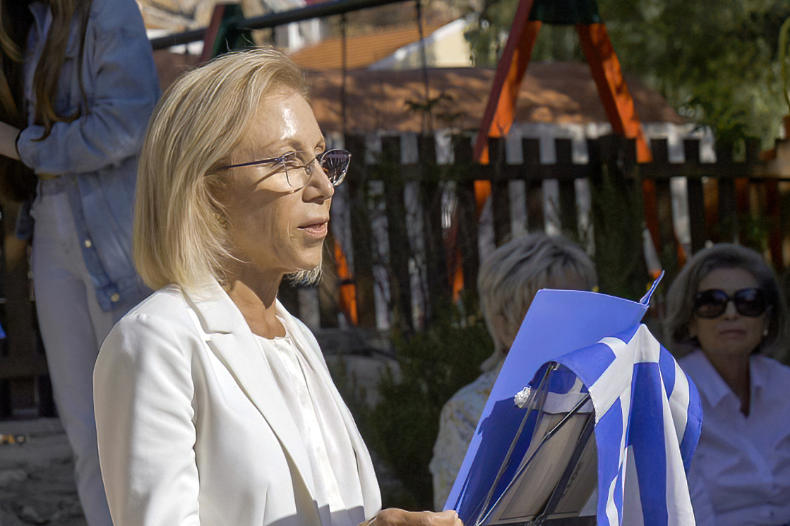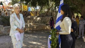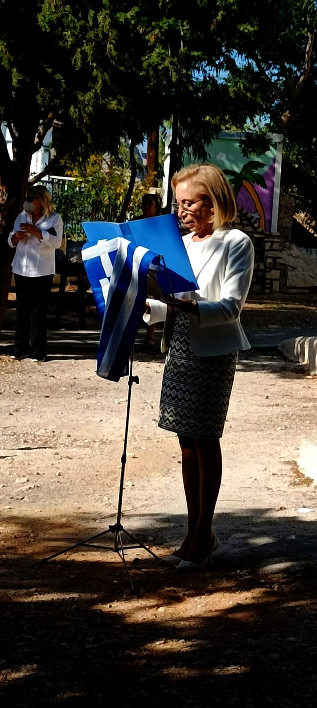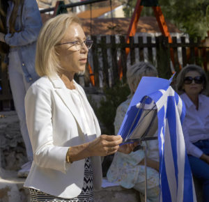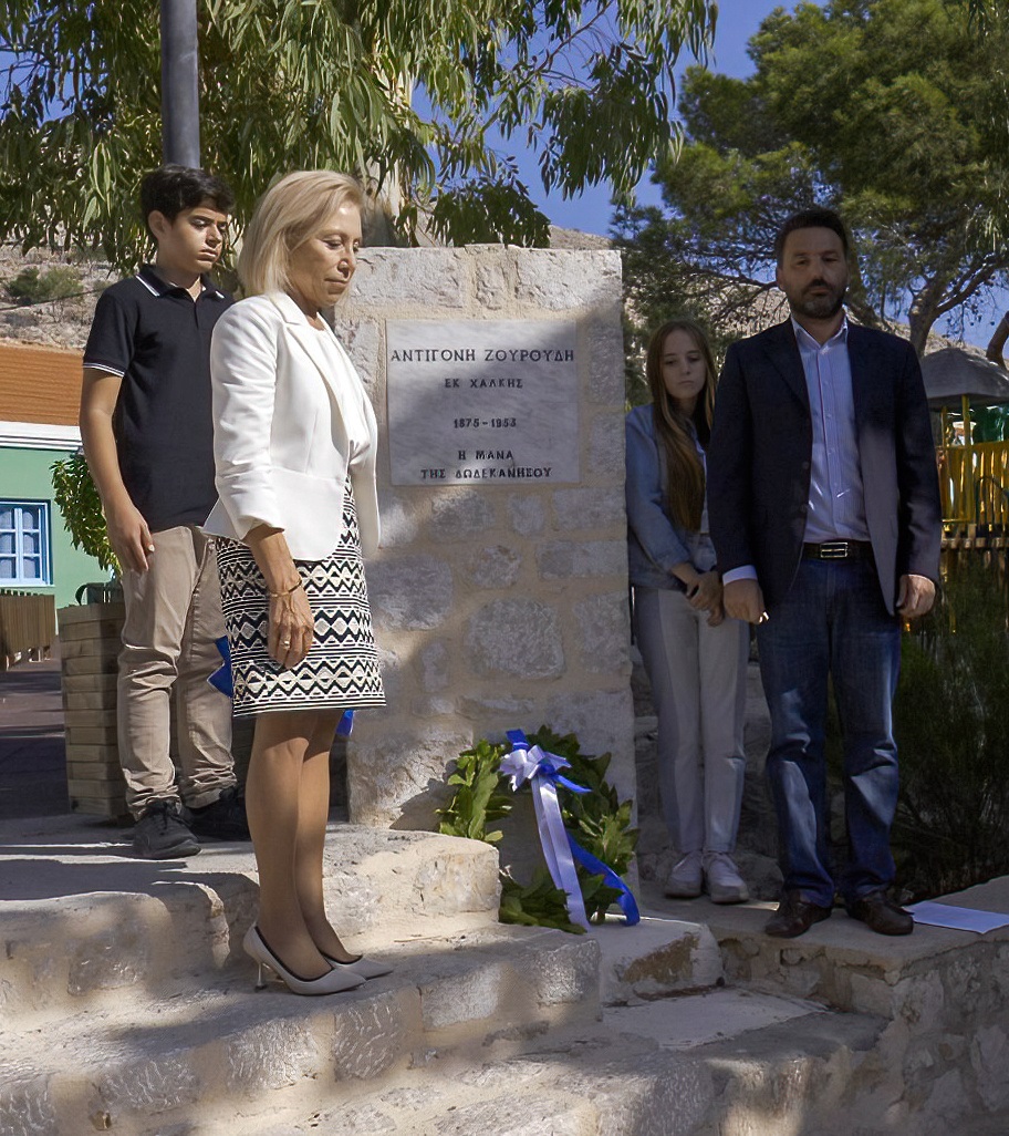 ΧΑΙΡΕΤΙΣΜΟΣ ΤΗΣ ΠΡΟΕΔΡΟΥ ΤΗΣ ΔΩΔΕΚΑΝΗΣΙΑΚΗΣ ΜΕΛΙΣΣΑΣ ΚΥΡΙΑΣ ΜΑΙΡΗΣ ΜΟΣΧΗ ΣΤΗΝ ΤΕΛΕΤΗ ΑΠΟΚΑΛΥΠΤΗΡΙΩΝ ΤΟΥ ΜΝΗΜΕΙΟΥ ΤΟΥ ΔΗΜΟΥ ΧΑΛΚΗΣ ΜΕ ΑΝΑΘΕΜΑΤΙΚΗ ΠΛΑΚΑ ΑΦΙΕΡΩΜΕΝΗ ΣΤΗΝ ΑΝΤΙΓΟΝΗ ΖΟΥΡΟΥΔΗ ΣΤΙΣ 27 ΟΚΤΩΒΡΙΟΥ 2022