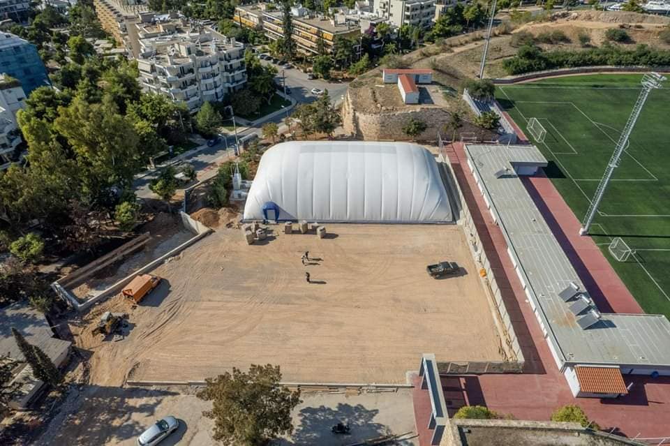 Ένα «μπαλόνι» που θα …γεμίσει με τρίποντα, ένα γήπεδο διαστημικό κατασκευάζεται και θα παραδοθεί μέχρι τα Χριστούγεννα στους μικρούς μπασκετμπολίστες της Γλυφάδας μας!