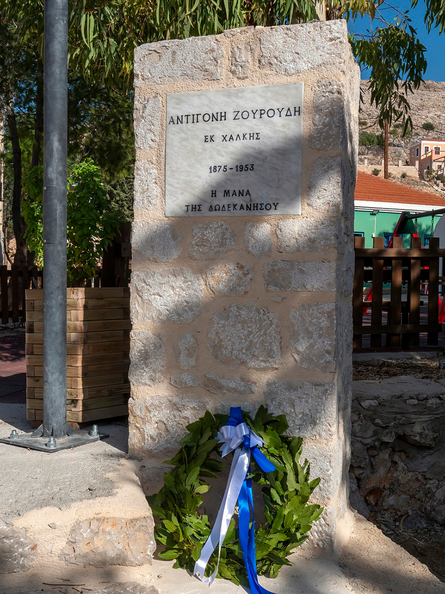 Κατά την επίσκεψη στις 27 Οκτωβρίου 2022 των μελών της «Δωδεκανησιακής Μέλισσας» στη Χάλκη έγιναν τα «αποκαλυπτήρια» του μνημείου προς τιμήν της Αντιγόνης Ζουρούδη, που τοποθετήθηκε στην αυλή του σχολικού συγκροτήματος της Χάλκης και κατασκευάστηκε με τη φροντίδα του Δημάρχου Χάλκης κ. Άγγελου Φραγκάκη, και της «Δωδεκανησιακής Μέλισσας».