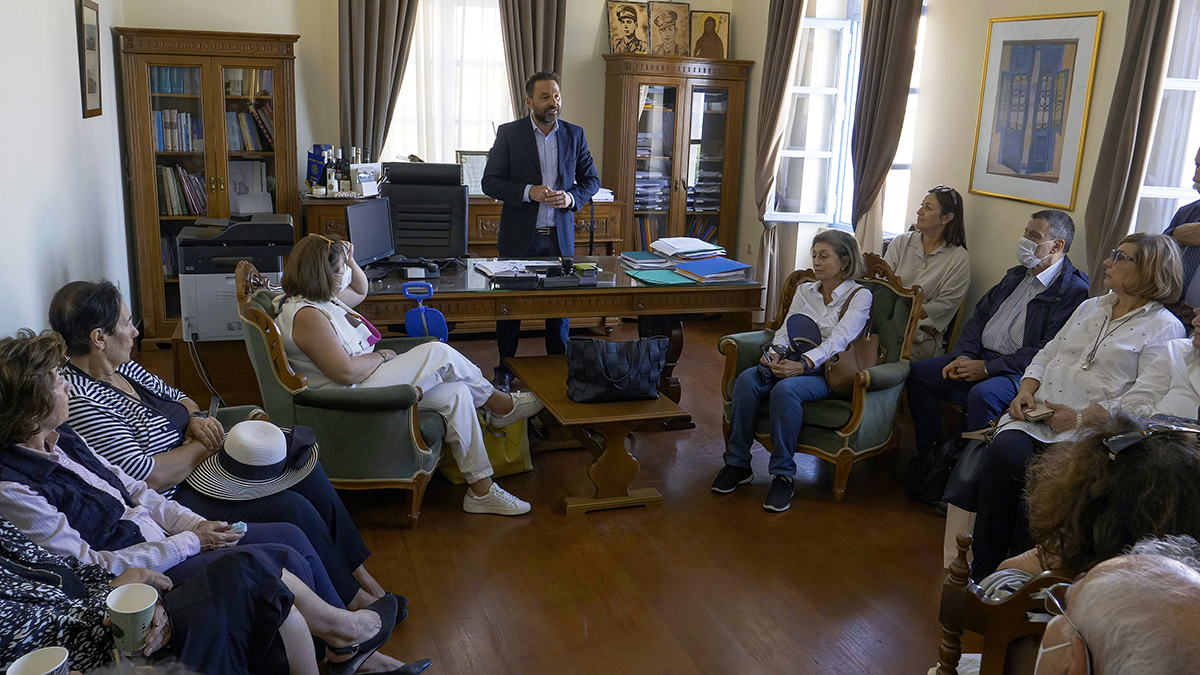Μετά την σεμνή τελετή που έγινε παρουσία των καθηγητών, δασκάλων και μαθητών του σχολείου, ακολούθησε επίσκεψη στο Δημαρχείο όπου ο κ. Δήμαρχος υποδέχθηκε τους επισκέπτες και τους μίλησε με συγκίνηση λέγοντας ότι γνωρίζει πολύ καλά το έργο του Σωματείου και το εκτιμά πολύ, γιατί και ο ίδιος υπήρξε υπότροφος της «Μέλισσας».