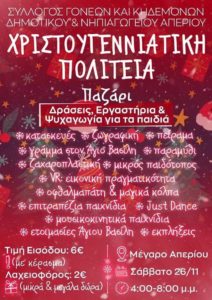 4:00-8:00 μ.μ Χριστουγεννιάτικο παζάρι&γωνία SELFIE φωτογράφησης & Παιδότοπος για μικρά παιδιά, Λαχειοφόρος αγορά 1€ & 2€/λαχνός.