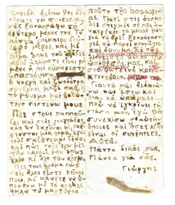 Το σημείωμα είναι ένα από τα λίγα που σώθηκαν και έφτασε στα χέρια μου από συντρόφους μετά την αποφυλάκισή μου τον Ιούλιο του 1974.