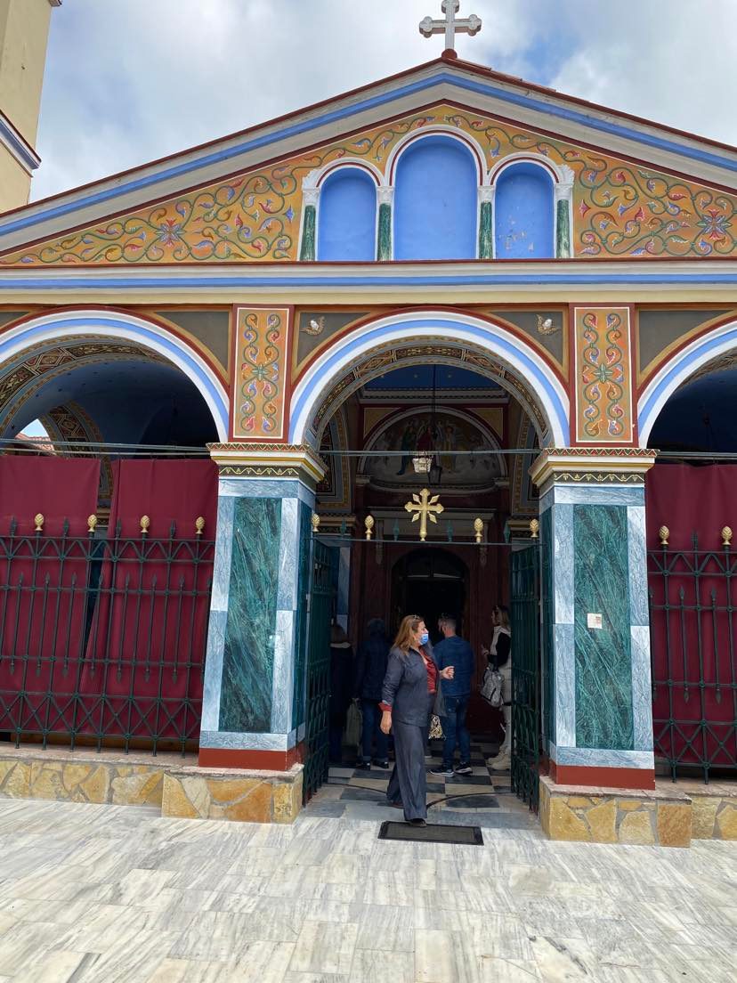 Πρώτη στάση ήταν η επίσκεψη στη Μονή Παμμεγίστων Ταξιαρχών Αιγιαλείας και Οσίου Λεοντίου μία μονή σε ένα καταπράσινο περιβάλλον, δίπλα στον ποταμό Σελινούντα, μία μονή με ιερά κειμήλια.