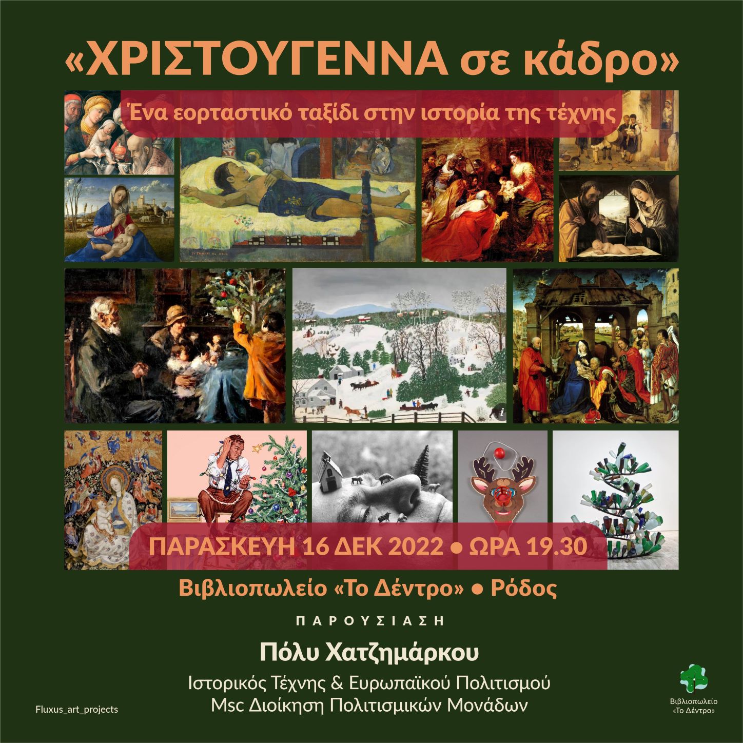 Το βιβλιοπωλείο «Το Δέντρο» και το Fluxus_art_projects σας προσκαλούν σε ένα εορταστικό ταξίδι στην ιστορία της τέχνης, με θέμα «Χριστούγεννα σε κάδρο».