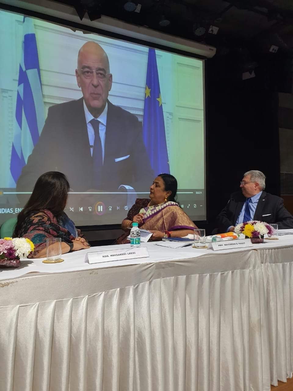 Το Συνέδριο χαιρέτησε με βιντεοσκοπημένο μήνυμα του ο Υπουργός Εξωτερικών, Νίκος Δένδιας, από Ινδικής πλευράς χαιρετισμό απηύθυνε η Υφυπουργός, Meenakshi Lekhi, ενώ παρέστη ο Πρέσβης της Ελλάδας στην Ινδία, Δημήτριος Ιωάννου. Στο μήνυμα του, ο κ. Δένδιας σημείωσε, μεταξύ άλλων, ότι «οι επιστήμονες σ’ αυτό το Συνέδριο διερευνούν τις πτυχές της ιστορίας μας, από την Ελληνιστική περίοδο έως τη Σύγχρονη Εποχή, με στόχο την οικοδόμηση μιας σχέσης που φιλοδοξεί να γίνει στο μέλλον στρατηγική, καθώς η Ελλάδα και η Ινδία έχουν κοινή θεώρηση των πραγμάτων». Ο κ. Δένδιας έκανε ακόμη αναφορά στην Έδρα Ελληνικών Σπουδών του Πανεπιστήμιο Jawaharlal Nehru (JNU), η οποία θα ενισχυθεί με Επισκέπτη Καθηγητή από την Ελλάδα από την αρχή μάλιστα του ακαδημαϊκού εξαμήνου.
