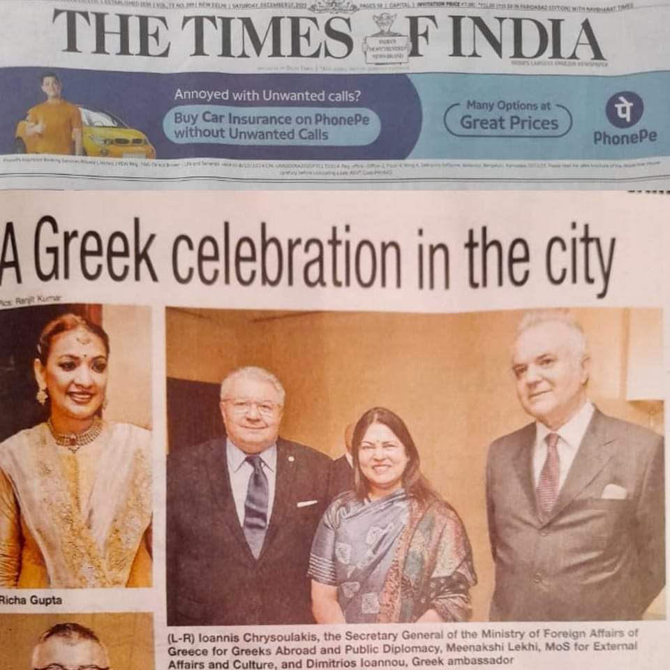 Παράλληλα, ο Γενικός Γραμματέας είχε γόνιμες επαφές με εκπροσώπους από τον πολιτικό και τον ακαδημαϊκό χώρο και συναντήθηκε με την Υφυπουργό Meenakshi Lekhi, Minister of State for External Affairs and Culture της κυβέρνησης της Ινδίας.