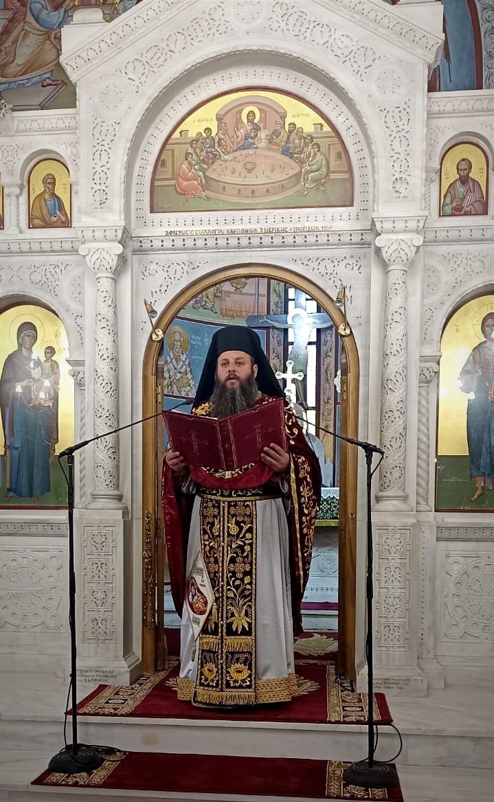 Ιερουργός, ο προϊστάμενος του Ιερού Ναού μας Αρχιμ. Αμβρόσιος ο οποίος μαζί με τον Πρωτοψάλτη μας κ.Ιωάννη Μαρή, απέδωσαν τους ξεχωριστούς ύμνους της ημέρας όπως αρμόζει.