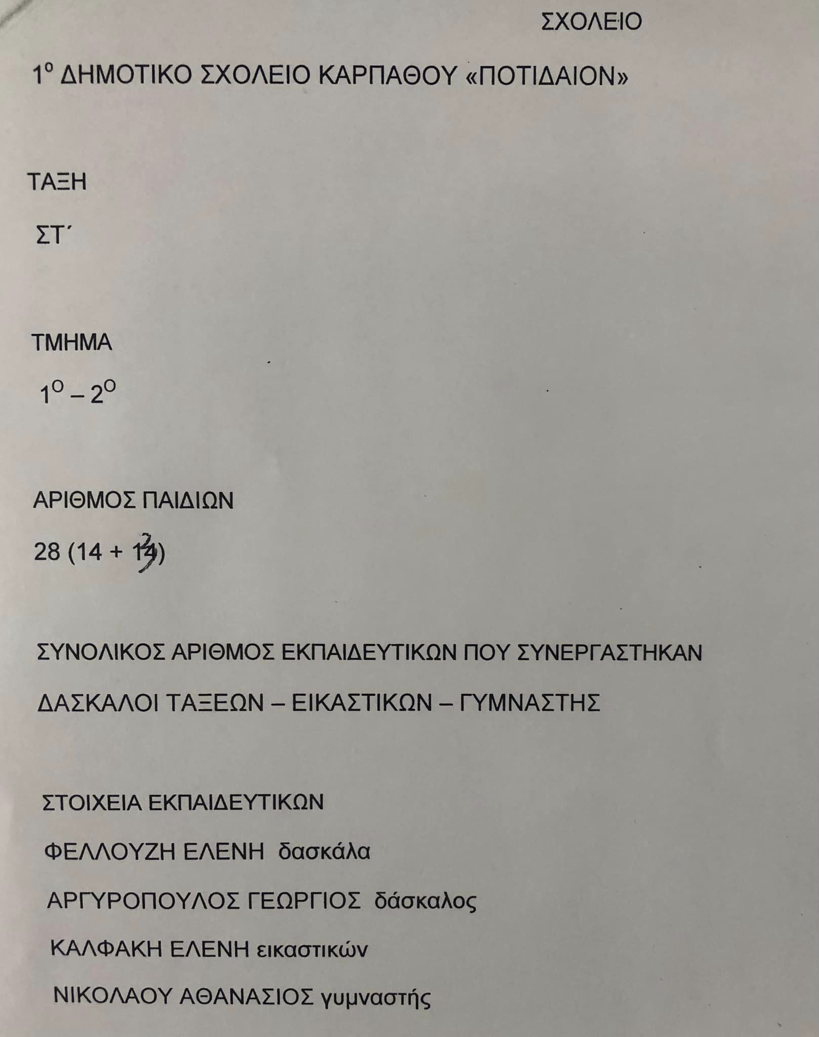 1ο Δημοτικό Σχολείο Καρπάθου «Ποτίδαιον»