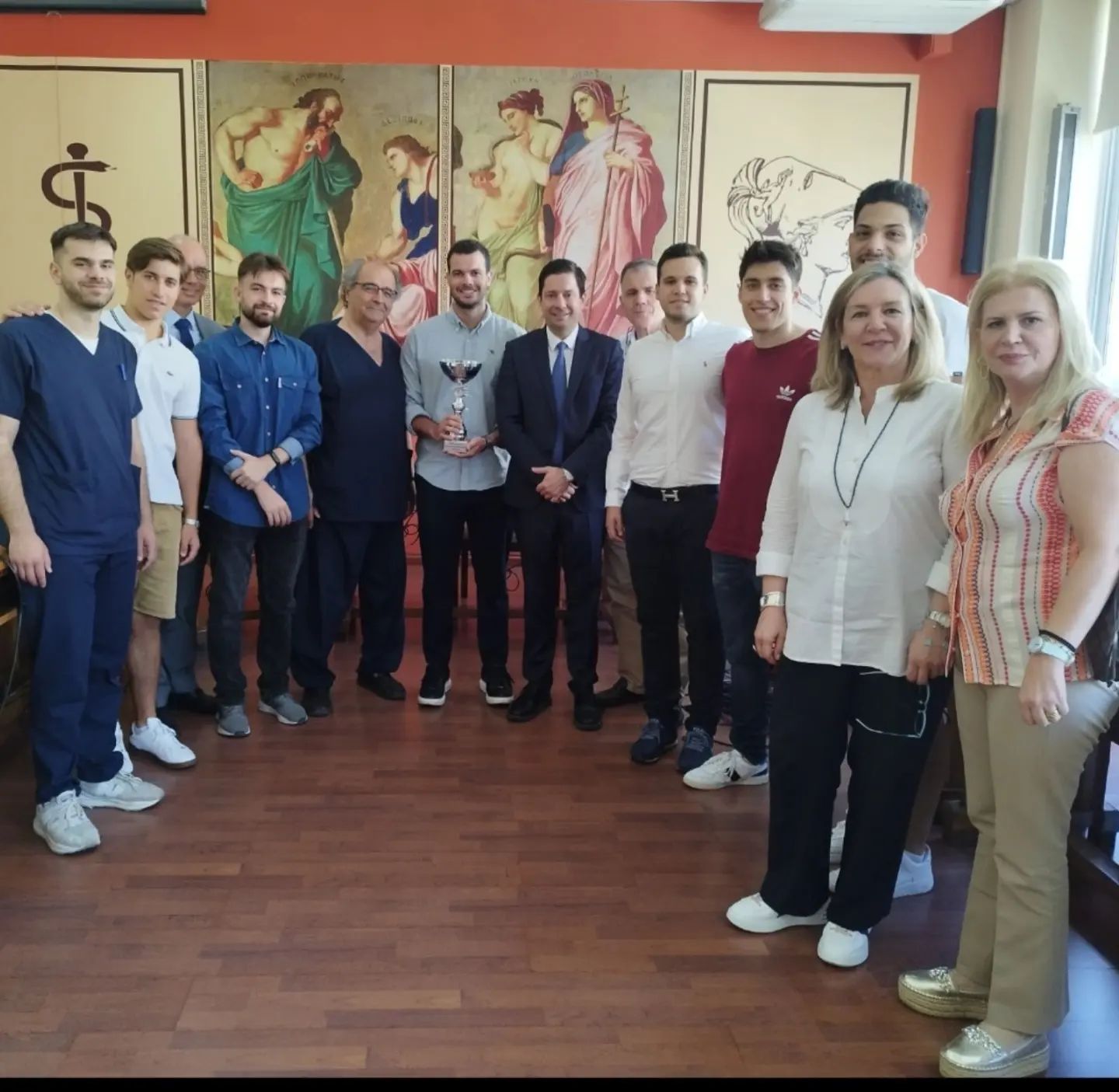 Σημερινή φωτογραφία από την Γενική Συνέλευση της Ιατρικής Σχολής Αθηνών, όπου έγινε τελετή παράδοσης του τροπαίου του πρωταθλήματος του ΕΚΠΑ στη διοίκηση της Σχολής.