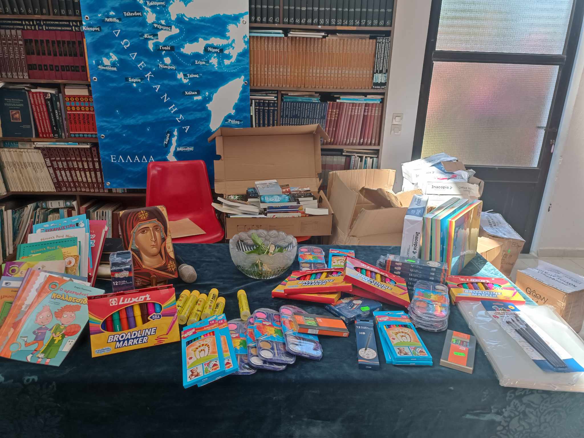 Και λίγες μέρες πριν ξεκινήσουν τα μαθήματα ήρθαν από τη Ρόδο, αναλώσιμα που είναι απαραίτητα για την εκπαιδευτική διαδικασία, χρώματα, μαρκαδόροι, μολύβια, ζελατίνες …. λογοτεχνικά βιβλία και άλλα πολλά … που την ημέρα του αγιασμού τα παραδώσαμε στον πάτερ Καλλίνικο με τις ευχές του κου Χατζημάρκου «Να είναι υγιής, να συνεχίσει να προσφέρει στον τόπο του γιατί στα παιδιά οφείλουμε τον πιο υπεύθυνο, τον πιο δημιουργικο εαυτό μας».