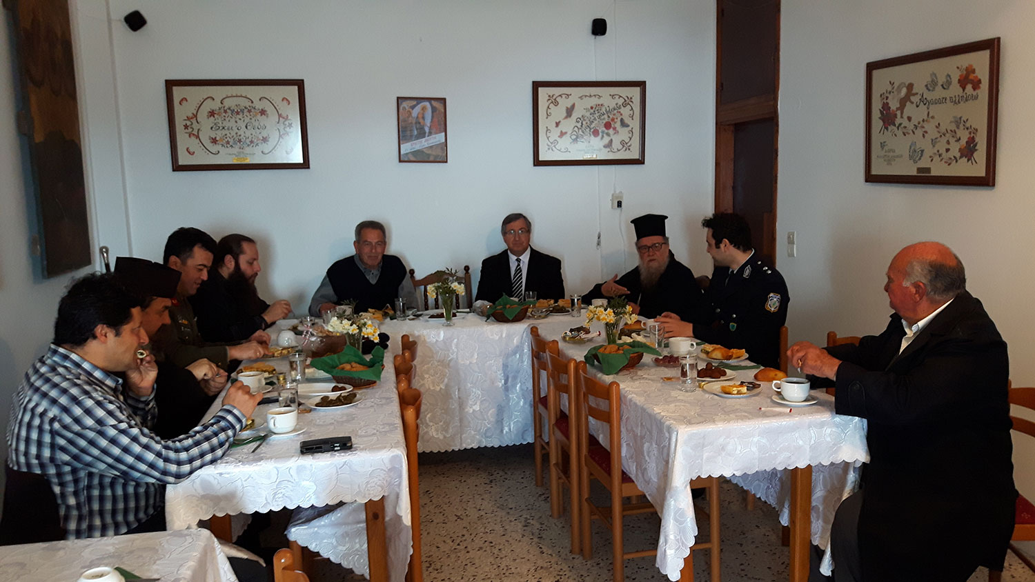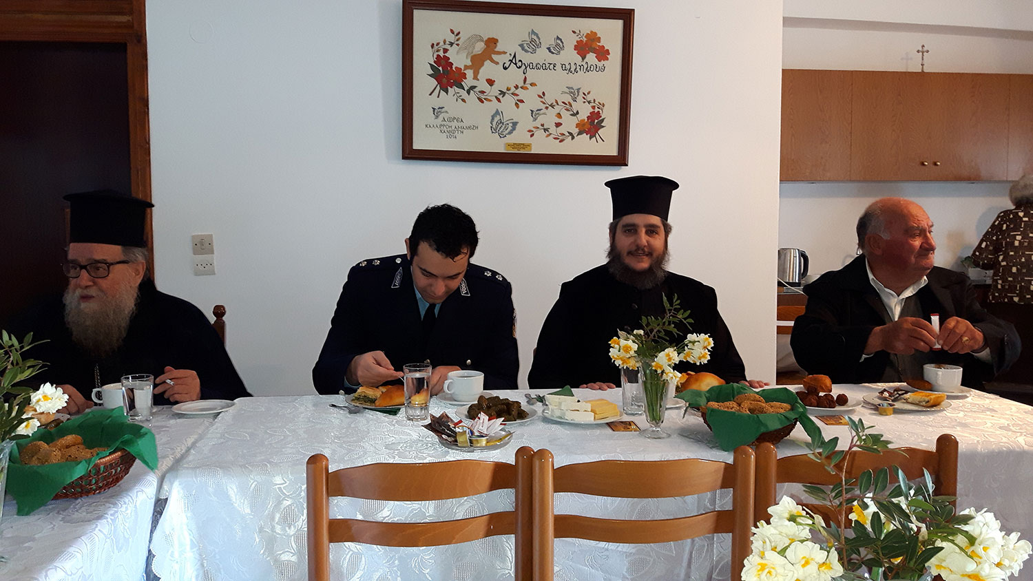 Μετά την Θεία Λειτουργία, οι κυρίες παρέθεσαν για τους επισήμους καφέ και εδέσματα, στο Πνευματικό κέντρο της ενορίας. Στις 12.30 το μεσημέρι, στο Μέγαρο της Ενορίας, παρετέθη εόρτια τράπεζα για όλους τους προσκυνητές, που κατέκλυσαν την αίθουσα.
