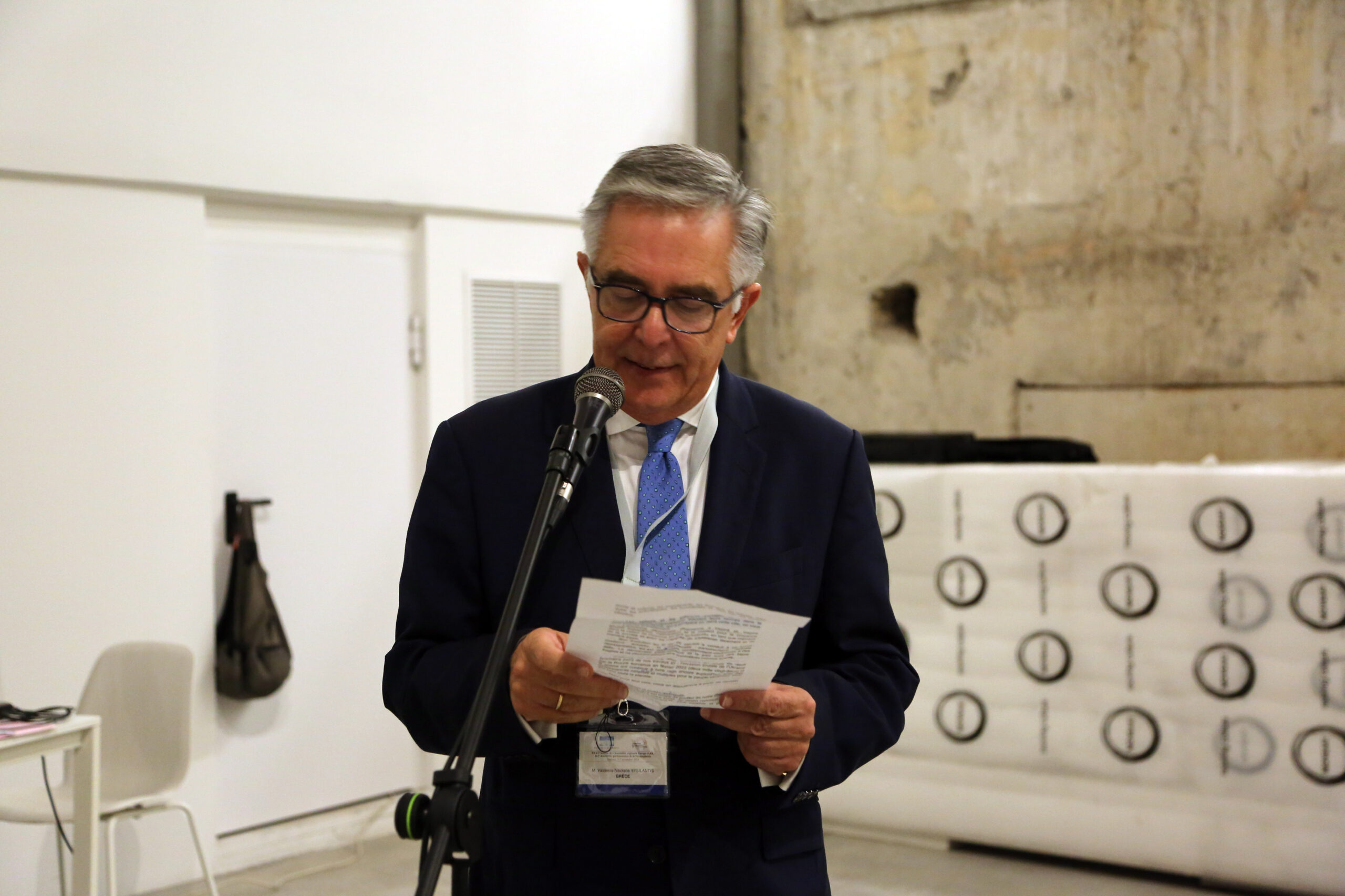 Ο Βασίλης Α. Υψηλάντης καλωσόρισε χθες τους συνέδρους στον Πολυχώρο της Βιβλιοθήκης της Βουλής, στο παλιό Καπνεργοστάσιο όπου παρατέθηκε δείπνο.
