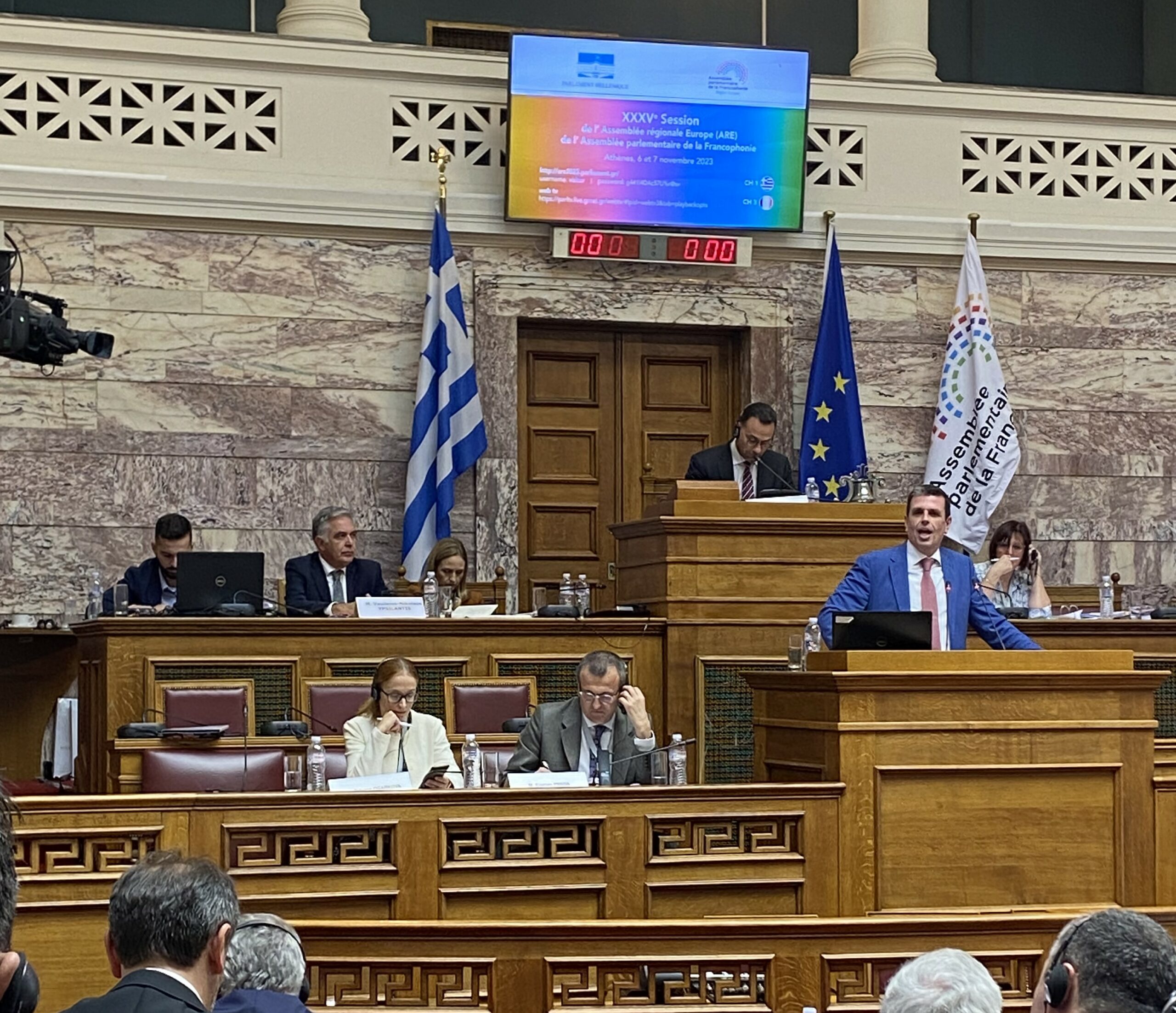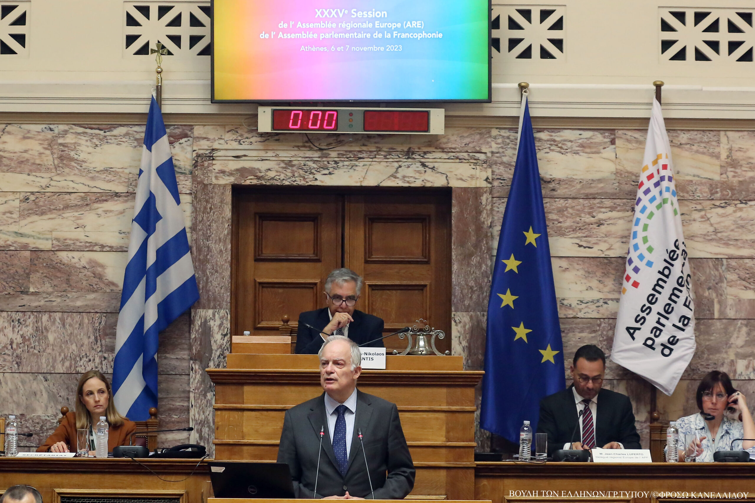 Ο Κοσμήτορας της Βουλής και Βουλευτής Δωδεκανήσου Βασίλης Α. Υψηλάντης προήδρευσε σήμερα στην έναρξη της 35ης Περιφερειακής Συνόδου Ευρώπης της Διακοινοβουλευτικής Συνέλευσης για την Γαλλοφωνία, που συγκαλείται στην Αθήνα, από 4 έως 7 Νοεμβρίου, στην Αίθουσα της Γερουσίας.