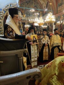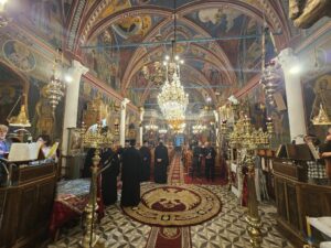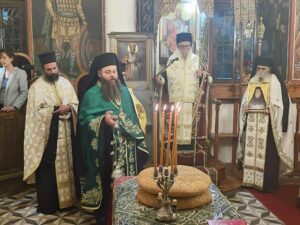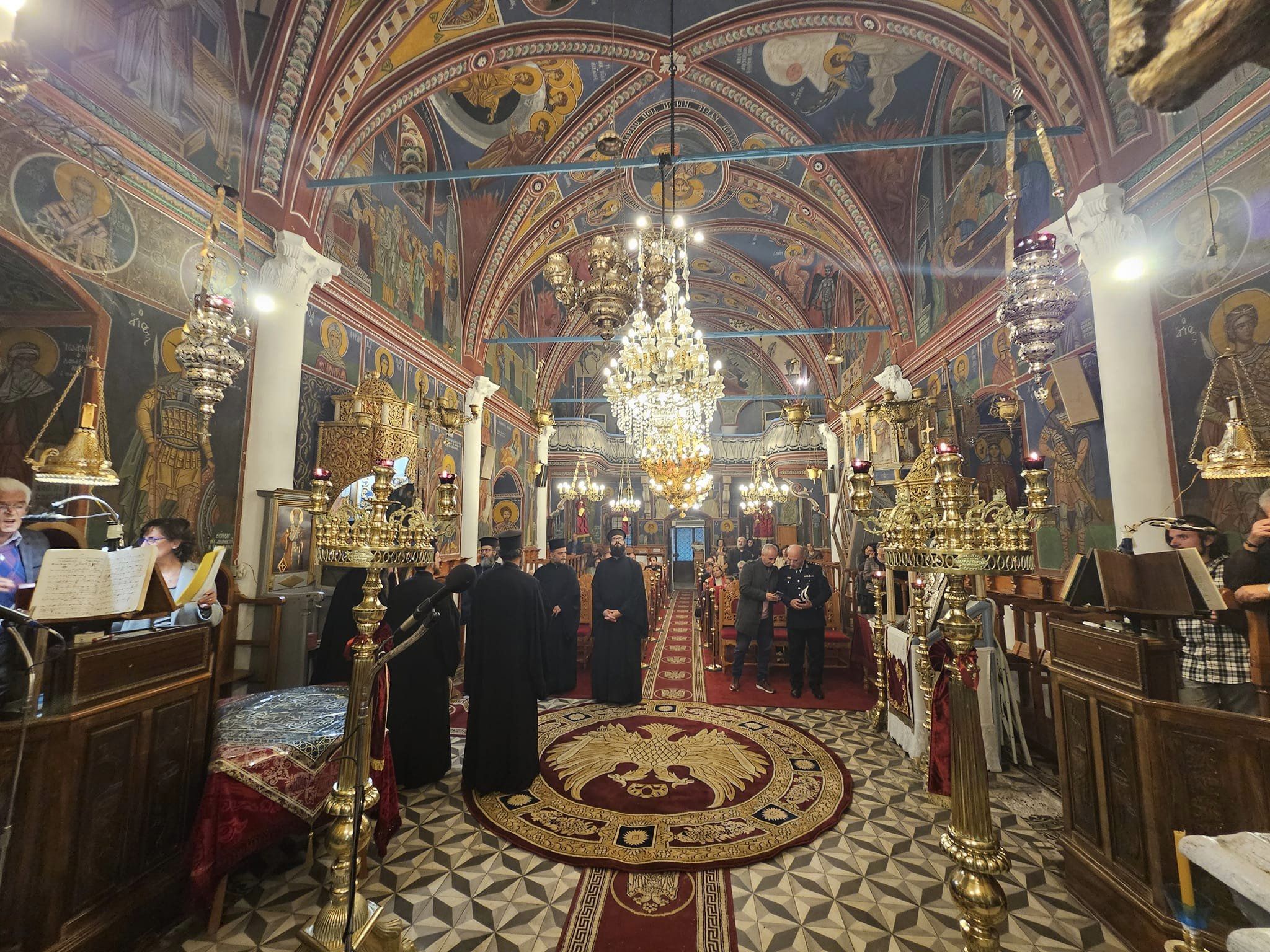 Χοροστάτησε ο εορτάζων Σεβασμιώτατος Ποιμενάρχης μας, ο Καρπάθου και Ηρωικής νήσου Κάσου κ.Αμβρόσιος, συμπαραστατούμενος από τον Ηγούμενο της Πατριαρχικής και Σταυροπηγιακής Μονής Αγ.Γεωργίου Βασσών και Εφημέριο Πυλών Αρχιμ. Καλλίνικο, από τον επίσης εορτάζοντα Ιεροκήρυκα της Μητροπόλεως και Εφημέριο Ευαγγελιστρίας Καρπάθου Αρχιμ. Αμβρόσιο Μαναρουλά, τον Γραμματέα της Μητροπόλεως Πρωτοπρεσβύτερο π.Δημήτριο Ζαγόρα, τον Εφημέριο Όθους Οικονόμο π. Δημήτριο Σκαρβελάκη, τον Εφημέριο Απερίου Ιερομ. π. Λουκά Ναβρούζογλου, τον Εφημέριο Μεσοχωρίου Πρεσβύτερο π. Στυλιανό Φασούλα και τον Εφημέριο Μενετών Πρεσβύτερο π. Μιχαήλ Φράγκο.
