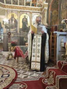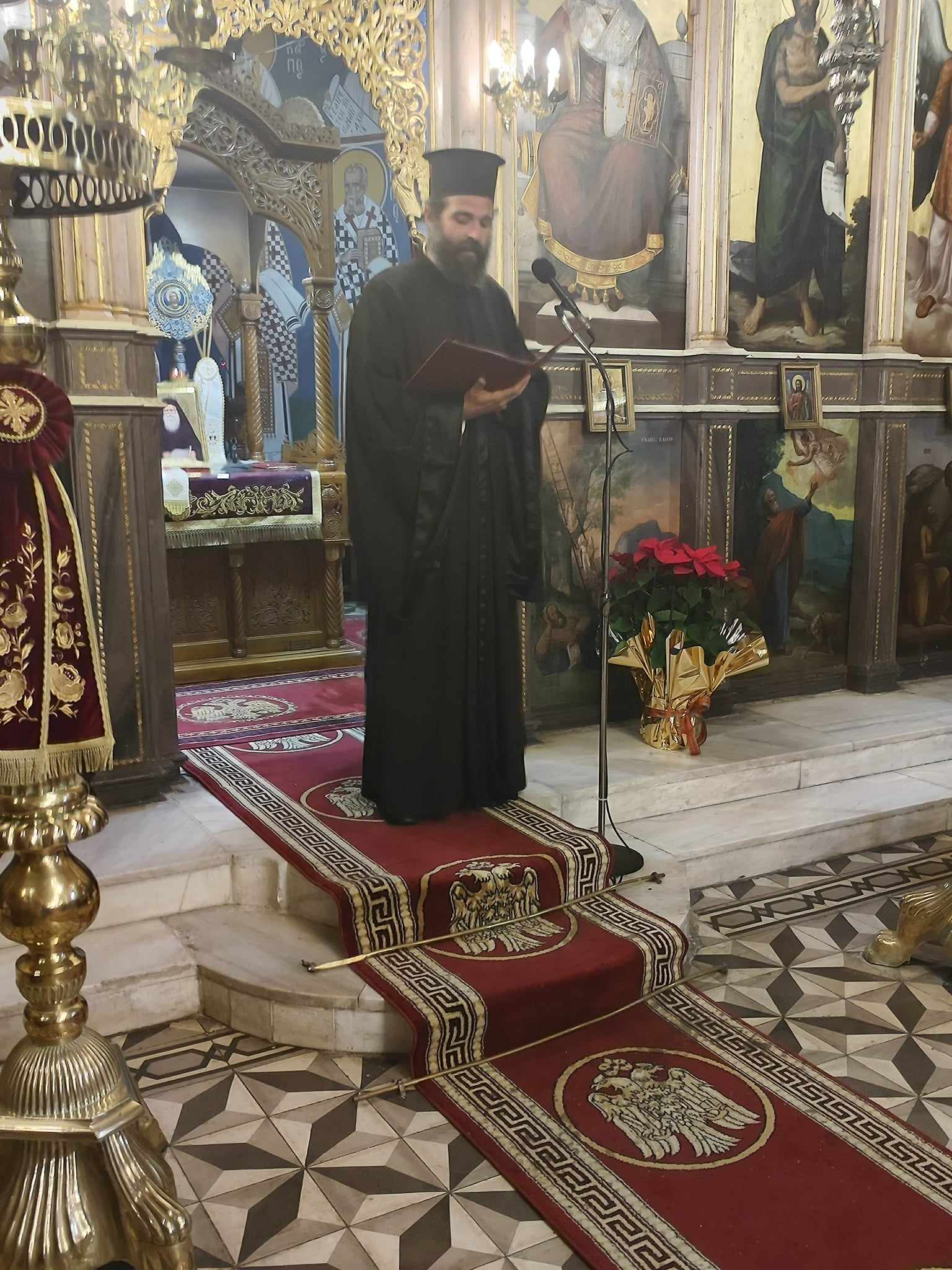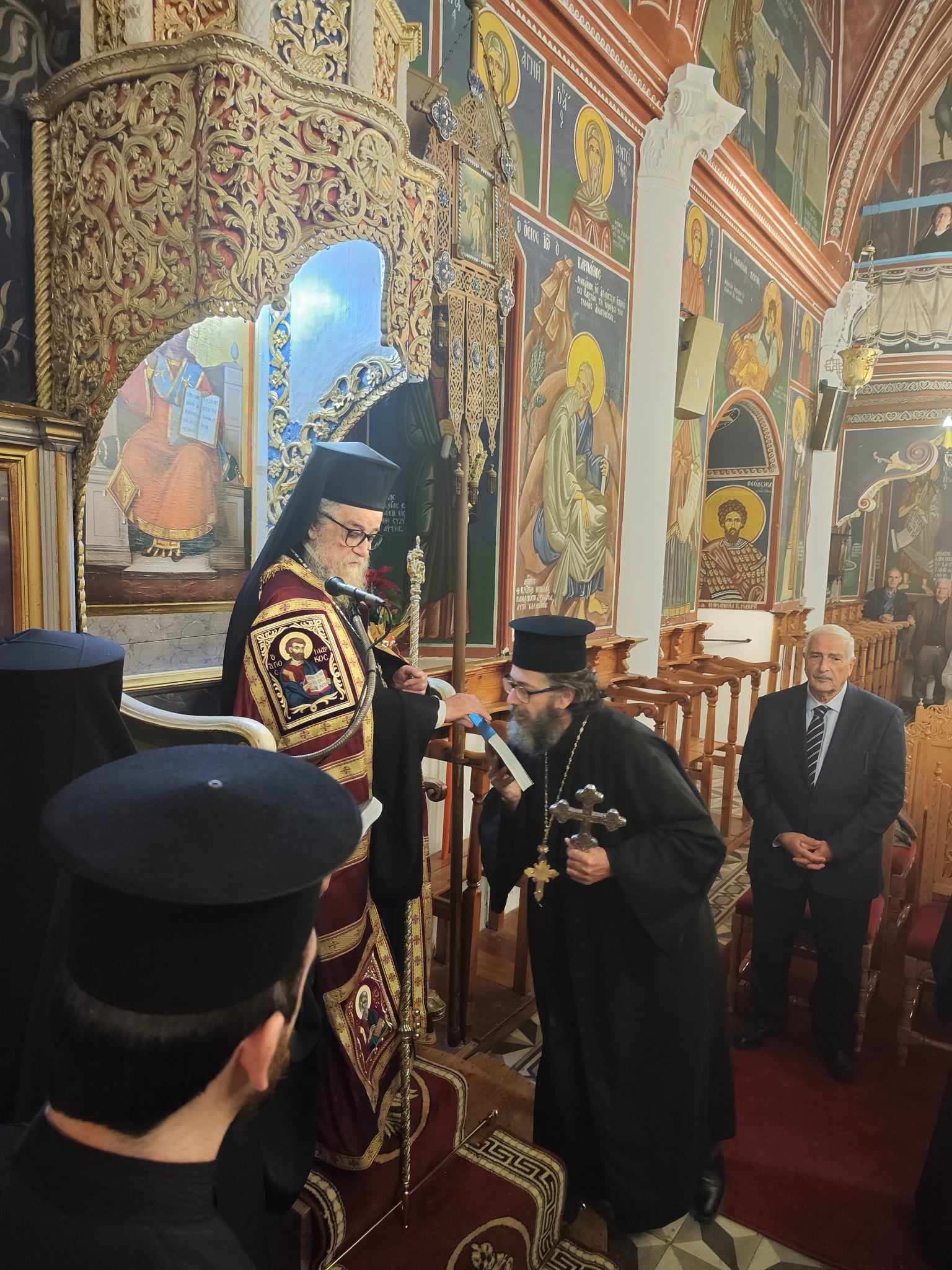 Επίκαιρο λόγο εκ μέρους του Ιερού κλήρου και του λαού εκφώνησε και απηύθυνε τις προσήκουσες ευχές προς τον Σεβασμιώτατο ο Οικονόμος π. Δημήτριος Σκαρβελάκης.