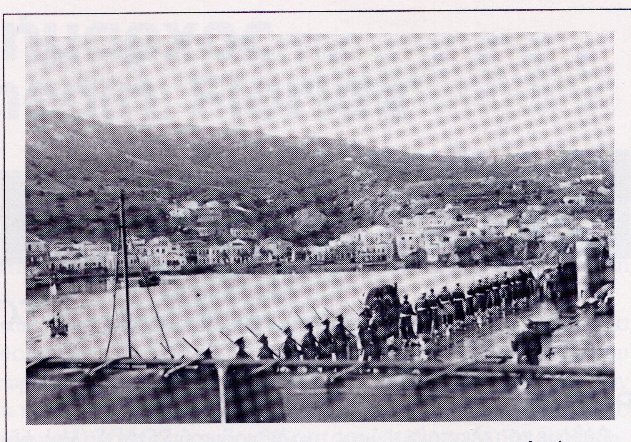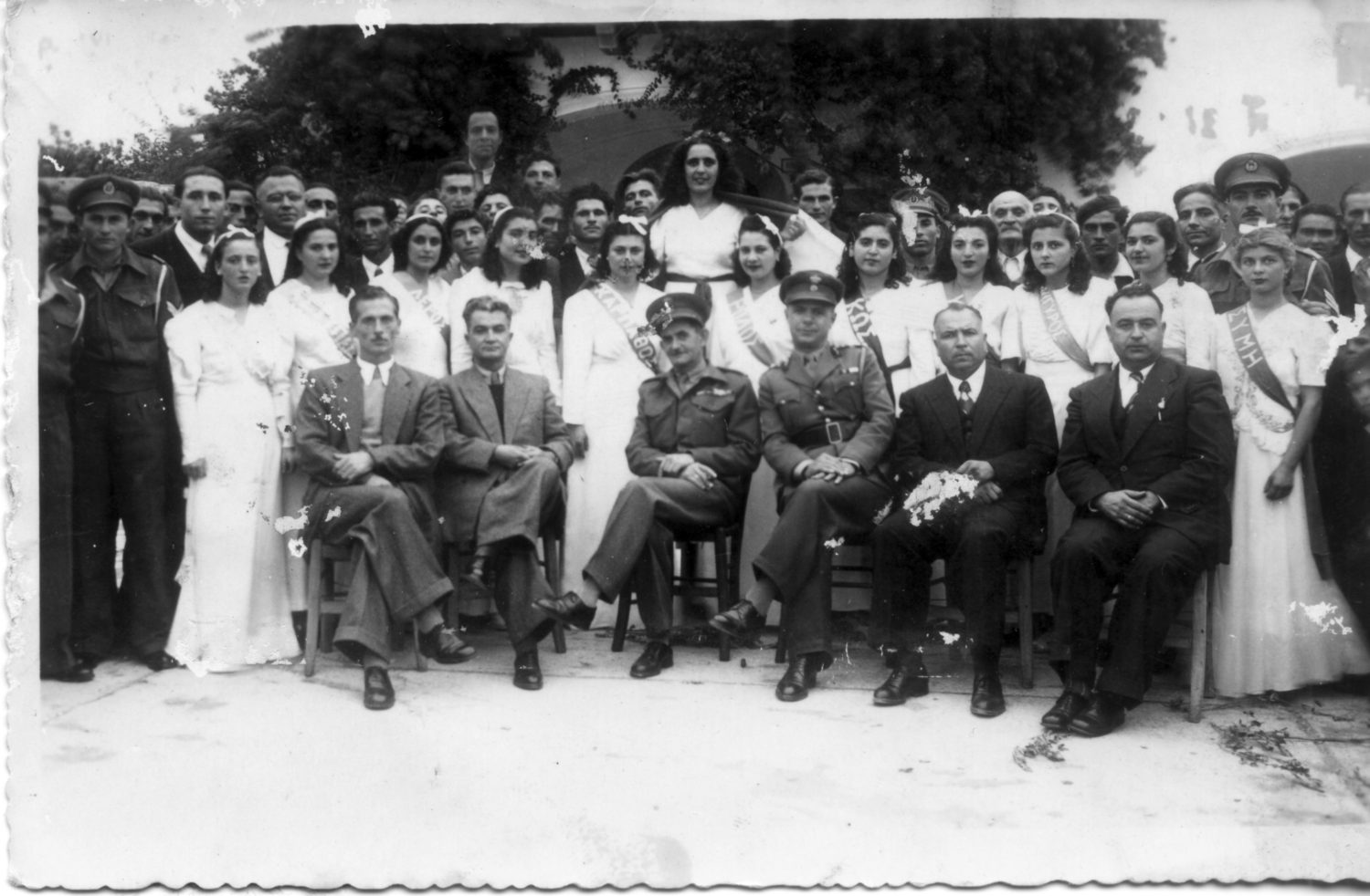 Το 1947, μετά τον εορτασμό της 28ης Οκτωβρίου 1940 στην πλατεία του Διοικητηρίου. Μπροστά από τις νέες κοπέλες που υποδύονται την Ελλάδα και τα Δωδεκάνησα κάθονται: Γεώργιος Αδαμαντίδης (διευθυντής του ταμείου), Τσακμάκης (ειρηνοδίκης), αντισυνταγματάρχης Κώνσταντίνος Κυριαζάνος (στρατιωτικός διοικητής), Πετσάλας (διοικητής Χωροφυλακής), Μαλούκος (δασάρχης), ιατρός Ανδρέας Λάμπρος.