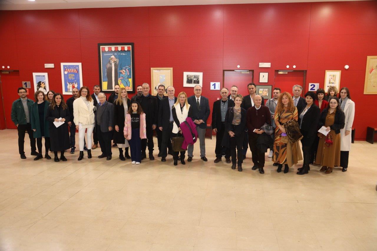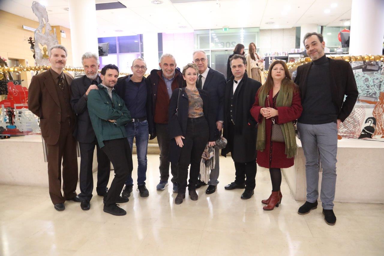 Από αριστερά: τα μέλη Ε.Σ.Ε. Αλέξανδρος Μαυρόγιαννης, Δημήτρης Σοφιανόπουλος, Αδαμάντιος Πετρίτσης, Νίκος Γιαννίκας, ο Νίκος Ζαπατίνας (3ο βραβείο θεατρικού έργου 30 σελίδων), Αλέξανδρος Κακαβάς, Γαία Κολλίντζα και Κατερίνα Καράμπελα (Λέσχη Φίλων), Ηλίας Φλωράκης και Αλέξης Γιαννούλης (μέλη Ε.Σ.Ε.)