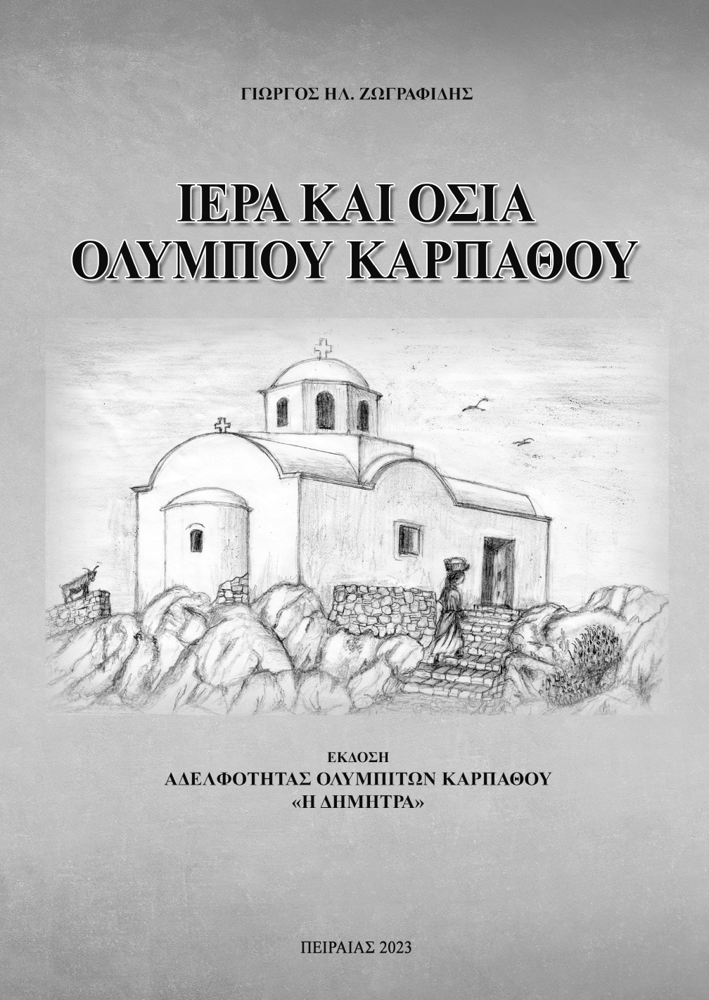Νέα μεγάλη συγγραφική έκδοση της Δήμητρας με τίτλο «Ιερά και Όσια Ολύμπου Καρπάθου» του Γιώργου Ηλ. Ζωγραφίδη. Η Αδελφότητα μας προχώρησε στις 22 Δεκεμβρίου 2023 στην έκδοση μιας ακόμα σπουδαίας συγγραφικής έκδοσης με τίτλο «Ιερά και Όσια Ολύμπου Καρπάθου» του πολυγραφότατου συμπατριώτη μας συγγραφέα Κου Γιώργου Ηλ. Ζωγραφίδη.