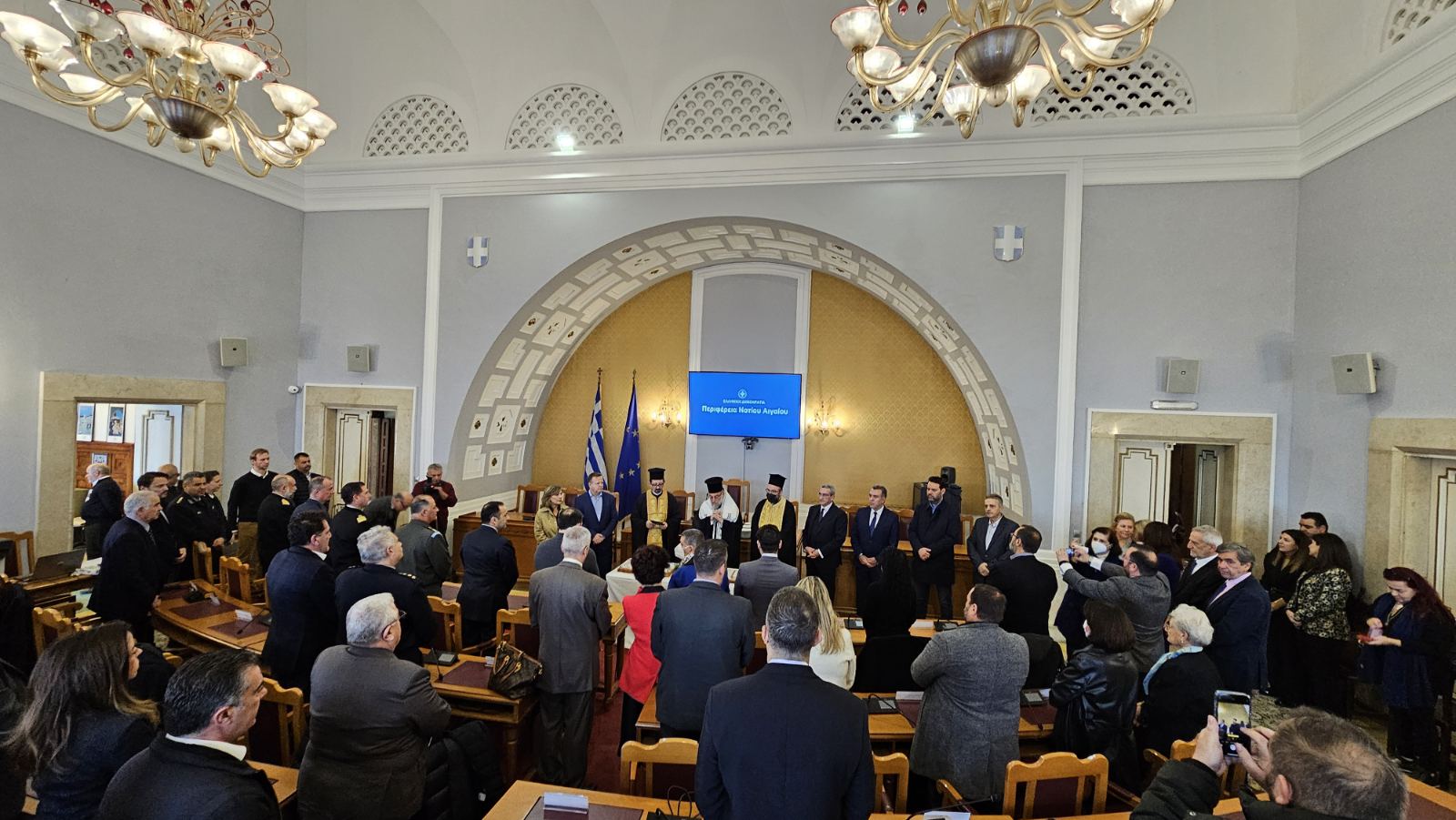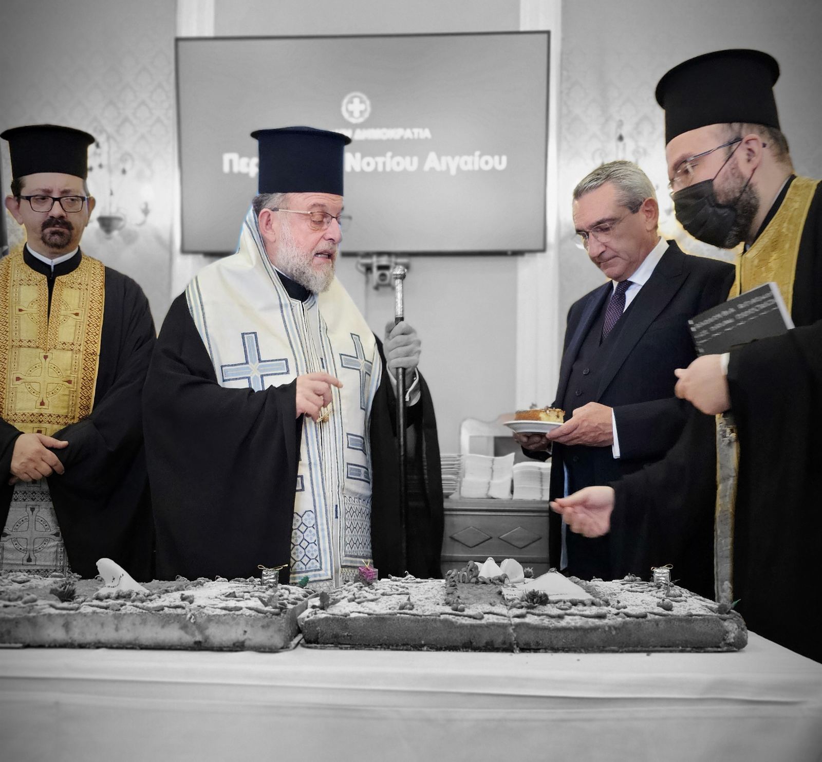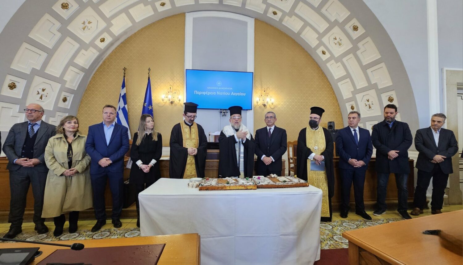 Προηγήθηκε Αγιασμός και κοπή της βασιλόπιτας του Περιφερειακού Συμβουλίου, που τέλεσε ο Μητροπολίτης Ρόδου κκ Κύριλλος, παρουσία του βουλευτή Δωδεκανήσου και πρώην υφυπουργού Τουρισμού, Μάνου Κόνσολα, του Δημάρχου Ρόδου, Αλέξανδρου Κολιάδη, της Δημάρχου Τήλου, Μαρίας Καμμά, της Γραμματέως Αποκεντρωμένης Διοίκησης Αιγαίου, Μαριάννας Νικολαΐδου, του Διοικητή της 95 ΑΔΤΕ, Υποστράτηγου Γεωργίου Μανουρά, του Διοικητή ΝΑΣ Ρόδου, Αντιπλοίαρχου Βασίλειου Σελλά, του Διοικητή του ΚΕΔΑ Ρόδου, Αντισμήναρχου Κίμωνα Χυτήρη, του Αστυνομικού Διευθυντή, Γεωργίου Στέργου, του Διοικητή της 8ης Περιφερειακής Διεύθυνσης Λ.Σ., Αρχιπλοιάρχου Ιωάννη Δελή, του Διοικητή της ΠΥ Ρόδου, Πύραρχου Νικήτα Βενιού, του Προέδρου του Επιμελητηρίου Δωδεκανήσου, Γιάννη Πάππου, του Προέδρου της ΕΞΡ, Γιάννη Παπαβασιλείου, του Προέδρου του ΕΣΡ, Νίκου Κωστάκη, του ΓΓ της ΕΣΕΕ, Νίκου Μπόνη, του Προέδρου του ΤΕΕ τμ Δωδεκανήσου, Γιάννη Γλυνού, καθώς και του Χρυσού Ολυμπιονίκη Πύρρου Δήμα, πρεσβευτή του Διεθνούς Μαραθωνίου Ρόδου 2024.