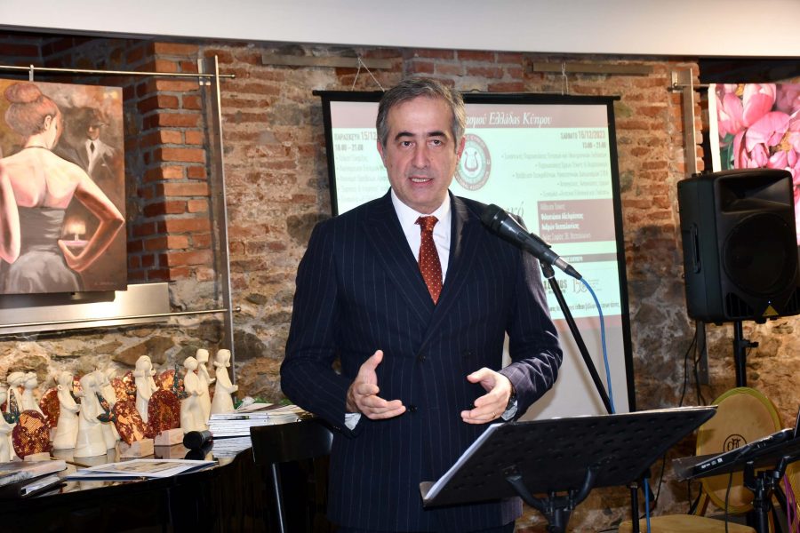 Στη συνέχεια, ο Γενικός Πρόξενος της Κυπριακής Δημοκρατίας στη Θεσσαλονίκη, κ. Κωνσταντίνος Πολυκάρπου, τόνισε ότι “Τόσο η Ελληνική Κυβέρνηση, το Υπουργείο Εσωτερικών – ΥΜΑΘ, η Γραμματεία Απόδημου Ελληνισμού, η Περιφέρεια Κεντρικής Μακεδονίας, όσο και ο Δήμος Θεσσαλονίκης έχουν αγκαλιάσει τις πρωτοβουλίες και τις δράσεις του Συνδέσμου Πολιτισμού Ελλάδας Κύπρου – ΣΠΕΚ, αυτό το διήμερο. Αυτός είναι ο λόγος που και το Γραφείο της Επιτρόπου Προεδρίας της Κυπριακής Δημοκρατίας έχει αγκαλιάσει τις δράσεις του ΣΠΕΚ. Αυτό που έχει να κάνει η Κυπριακή Δημοκρατία και είμαι σίγουρος και η ελληνική είναι μέσω των μνημονίων και των συμφωνιών να δώσει το πλαίσιο μέσα στο οποίο πολιτιστικοί φορείς όπως ο Σύνδεσμος Πολιτισμού Ελλάδας Κύπρου – ΣΠΕΚ, να αναγάγουν τις δράσεις του πολιτισμού και της παιδείας, τις μεταρρυθμίσεις, να πάμε τον πολιτισμό μας ένα βήμα πιο πέρα”.
