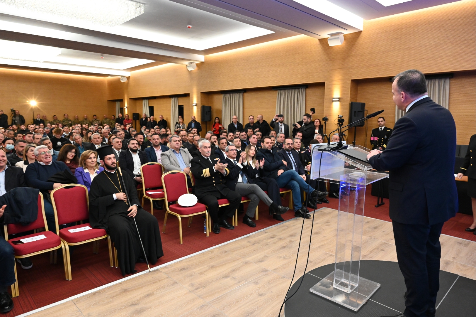 Μετά τον συγχαρητήριο λόγο του Αρχηγού του Λιμενικού Σώματος, Αντιναυάρχου Λ.Σ. Γεώργιου Αλεξανδράκη στο βήμα ανέβηκε ο κ. Παππάς, διευκρινίζοντας ότι, είχε προετοιμάσει αναλυτική ομιλία για την περίσταση, όμως, λόγω συναισθηματικής φόρτισης, προτίμησε να μιλήσει συνοπτικά για τις σκληρές εκείνες στιγμές.