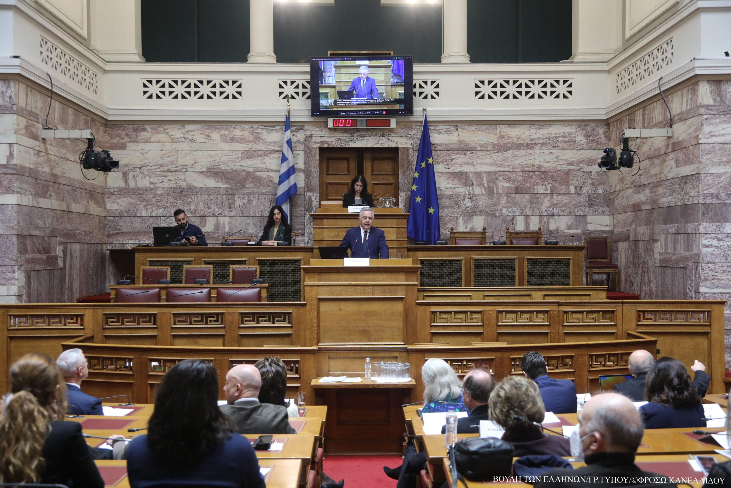 «Έχω την χαρά και την τιμή να κηρύσσω την έναρξη των εργασιών του Συνεδρίου «Το 1821 στην Πρώτη Σελίδα: Η Ελληνική Επανάσταση στον Διεθνή και Εγχώριο Τύπο», που συνδιοργανώνουν η Βουλή των Ελλήνων, το Εργαστήριο Πολιτικής και Θεσμικής Θεωρίας και Ιστορίας των Ιδεών του Εθνικού & Καποδιστριακού Πανεπιστημίου Αθηνών και η Βρετανική Σχολή Αθηνών. Πρόκειται για ένα διήμερο Συνέδριο που συγκεντρώνει διεπιστημονικές συμβολές από διαπρεπείς επιστήμονες, με στόχο να αναδειχθούν όψεις της λειτουργίας του Τύπου κατά την Επανάσταση του 1821.