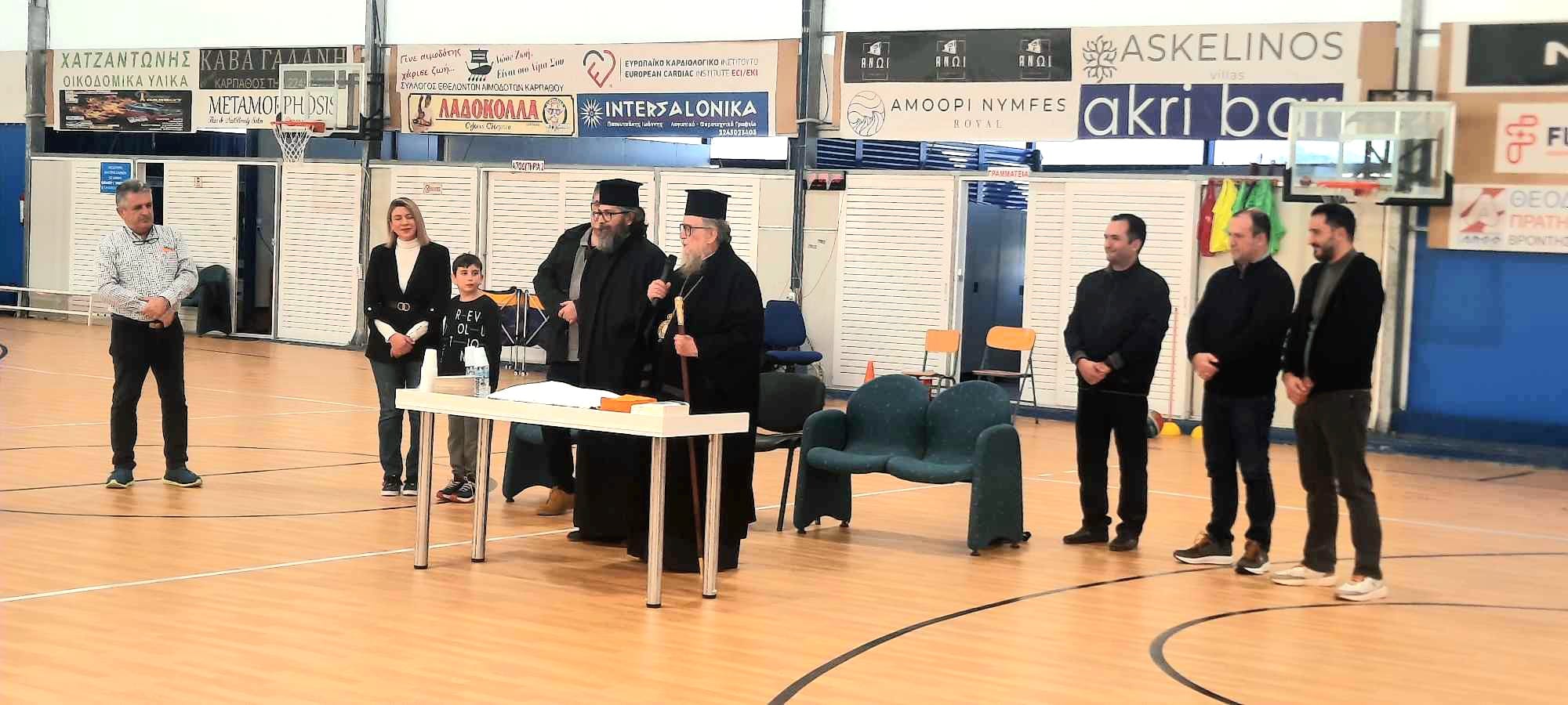 Ο Σεβασμιότατος αφού ευχήθηκε σε όλους τους παρευρισκόμενους υγεία και χαρές για το νέο έτος, αναφέρθηκε στην σπουδαιότητα του αθλητισμού και τόνισε ότι πρωταρχική σημασία έχει η συμμετοχή και ότι οι νίκες έπονται.