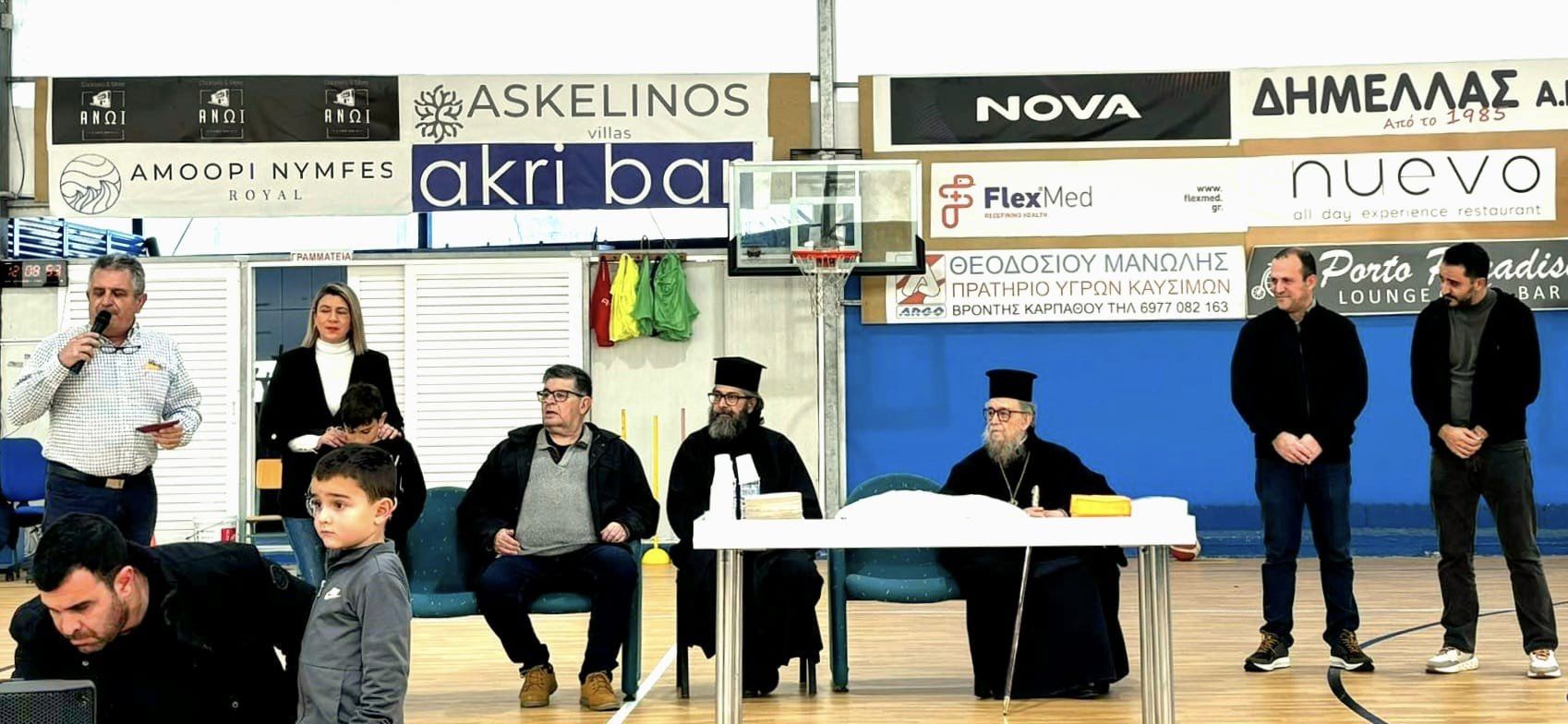 Στο κλειστό γήπεδο μπάσκετ Καρπάθου, με την παρουσία του Σεβασμιωτάτου Μητροπολίτη Καρπάθου-Κάσου κ.κ Αμβρόσιου, του Γραμματέα της Μητροπόλεως, Πρωτοπρεσβύτερου π. Δημήτριου Ζαγόρα, του δημαρχεύοντα αντιδημάρχου διοικητικών και οικονομικών Νίκου Πρωτόπαπα, του αντιδήμαρχου παιδείας και τουρισμού Αναστάσιου Μηλιού, του προέδρου του Αθλητικού Συλλόγου “Ιαπετός” Μανόλη Τηλιακού, της διευθύντριας του γυμνασίου Πηγαδιών κας Φωτεινής Βασίλα, των προπονητών ποδοσφαίρου μπάσκετ και τένις καθώς και των αθλητών των ακαδημιών μπάσκετ και και των γονέων τους, ο Πρωτέας έκοψε την Αγιοβασιλόπιτα του!