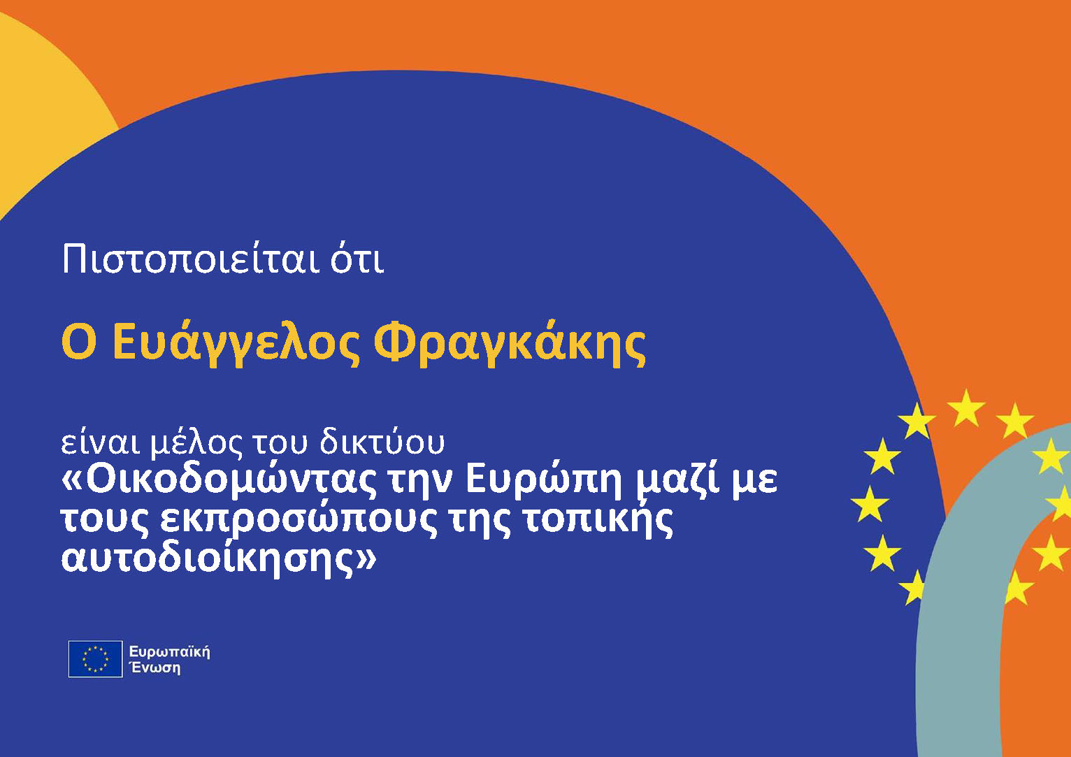 Με ιδιαίτερη χαρά ο Δήμαρχος Χάλκης κ. Ευάγγελος Φραγκάκης ανακοινώνει την ένταξή του στο Ευρωπαϊκό Δίκτυο «Οικοδομώντας την Ευρώπη μαζί με τους εκπροσώπους της Τοπικής Αυτοδιοίκησης».