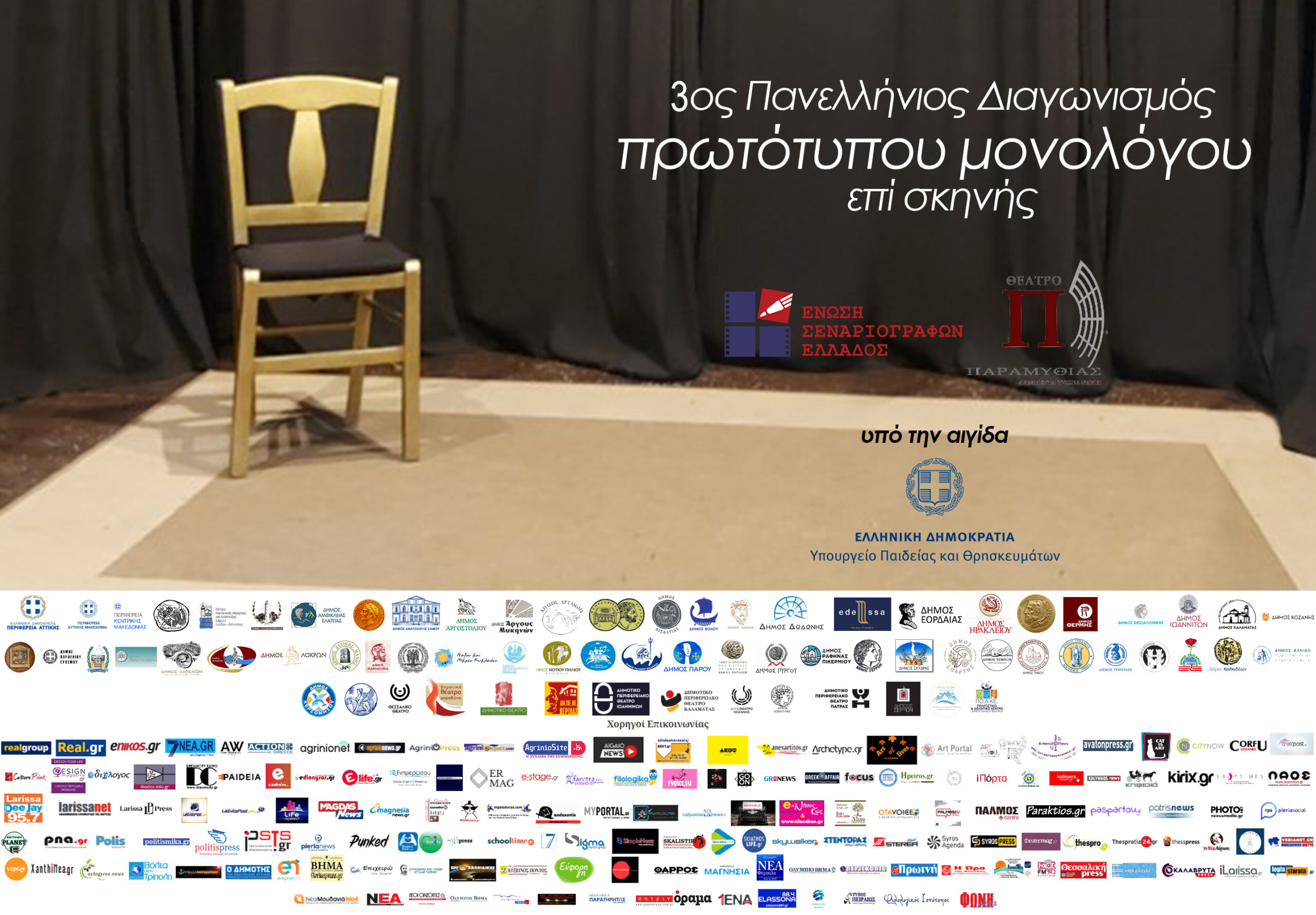 Η Ένωση Σεναριογράφων Ελλάδος έπειτα από την άκρως επιτυχημένη διεξαγωγή του 1ου Πανελλήνιου Διαγωνισμού Πρωτότυπων Μονολόγων επί Σκηνής, ως γνωστόν, καθιέρωσε τον Πανελλήνιο Διαγωνισμό Συγγραφής και Ερμηνείας Πρωτότυπων Μονολόγων επί Σκηνής ως ετήσια πανελλήνια πολιτιστική εκδήλωση εξ ου και προκηρύσσει τον τρίτο (3ο) προσκαλώντας τους θιασώτες του ιδιαίτερου αυτού θεατρικού είδους, από όλη την Επικράτεια αλλά και το εξωτερικό, να προσέλθουν και να παρουσιάσουν το έργο τους στον 3ο Πανελλήνιο Διαγωνισμό Συγγραφής και Ερμηνείας Πρωτότυπων Μονολόγων επί Σκηνής.