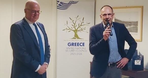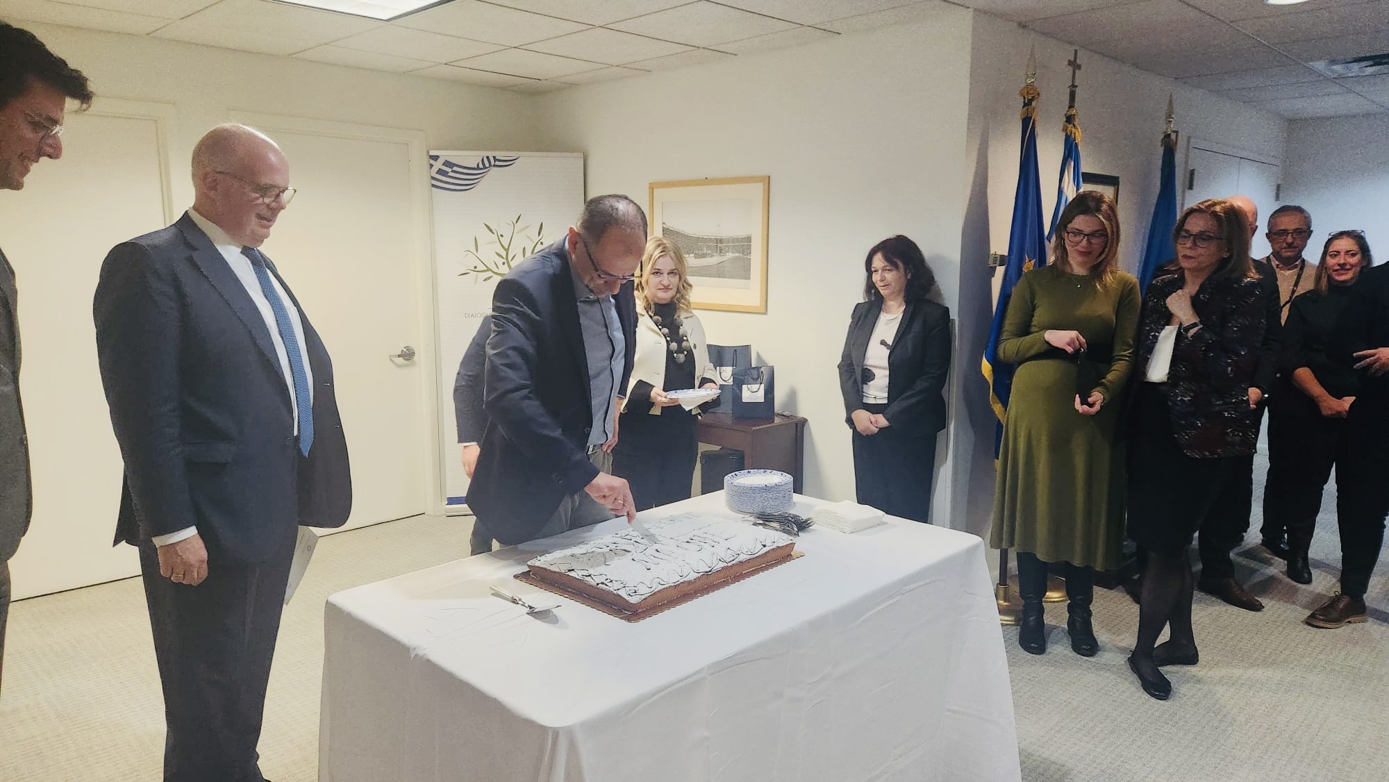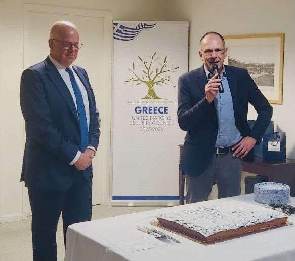 Κατά τη διάρκεια της παραμονής του στη Νέα Υόρκη, ο Υπουργός Εξωτερικών, Γιώργος Γεραπετρίτης παρέστη στην κοπή της βασιλόπιτας της Μόνιμης Αντιπροσωπείας της Ελλάδας στον ΟΗΕ, παρουσία του Μόνιμου Αντιπροσώπου της Ελλάδας στον ΟΗΕ, Πρέσβη Ευάγγελου Σέκερη, του Πρέσβη της ΕΕ στον ΟΗΕ, Σταύρου Λαμπρινίδη και των Στελεχών της ΜΑ της Ελλάδας, ΟΗΕ, των ΗΕ και λοιπών Διεθνών Οργανισμών.