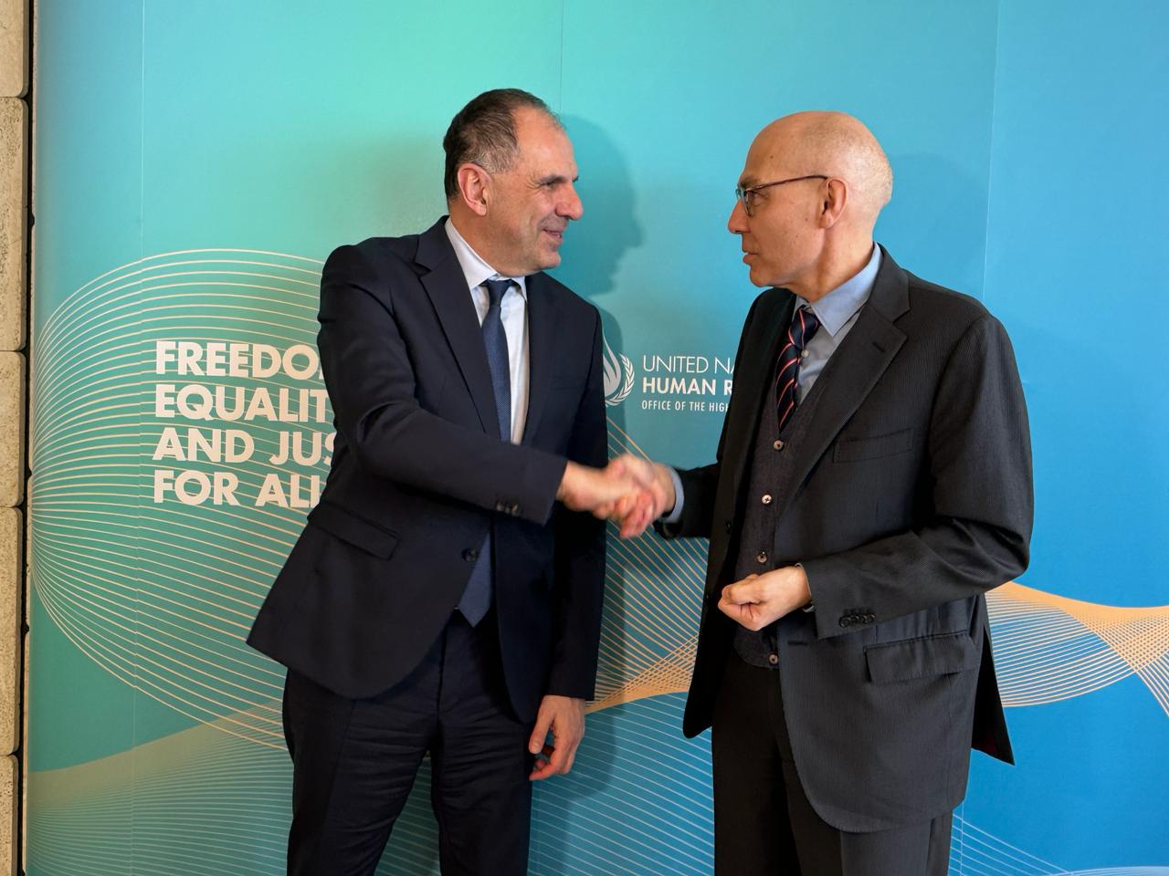 On the sidelines of #HRC55, FM Gerapetritis met with the UN High Commissioner for Human Rights, Volker Türk, the Human Rights Council President for 2024, Omar Zniber, the Executive Vice President of the World Jewish Council, Maram Stern and the Representative at UN Geneva and UNESCO, and Coordinator on Countering Antisemitism for the World Jewish Congress, Leon Saltiel.