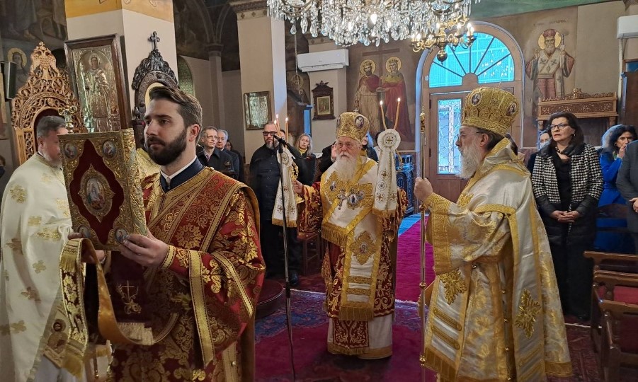 Την Κυριακή 3 Μαρτίου, η Ομοσπονδία μας οργάνωσε τον πρώτο επίσημο εορτασμό των εν Δωδεκάνησω Αγίων στην παροικία μας. Συγκεκριμένα, στον Ιερό Ναό Αγίου Νικολάου του εν Αθήναις Γραφείου Εκπροσωπήσεως του Οικουμενικού Πατριαρχείου (πρώην Πτωχοκομείου) συλλειτούργησε ο Σεβασμιώτατος Μητροπολίτης Κηφισίας, Αμαρουσίου, Ωρωπού και Μαραθώνος κ. Κύριλλος μετά του άγοντος την ονομαστική του εορτή, Σεβασμιωτάτου Μητροπολίτου Λαοδικείας κ. Θεοδωρήτου, Διευθυντού του εν λόγω Γραφείου.