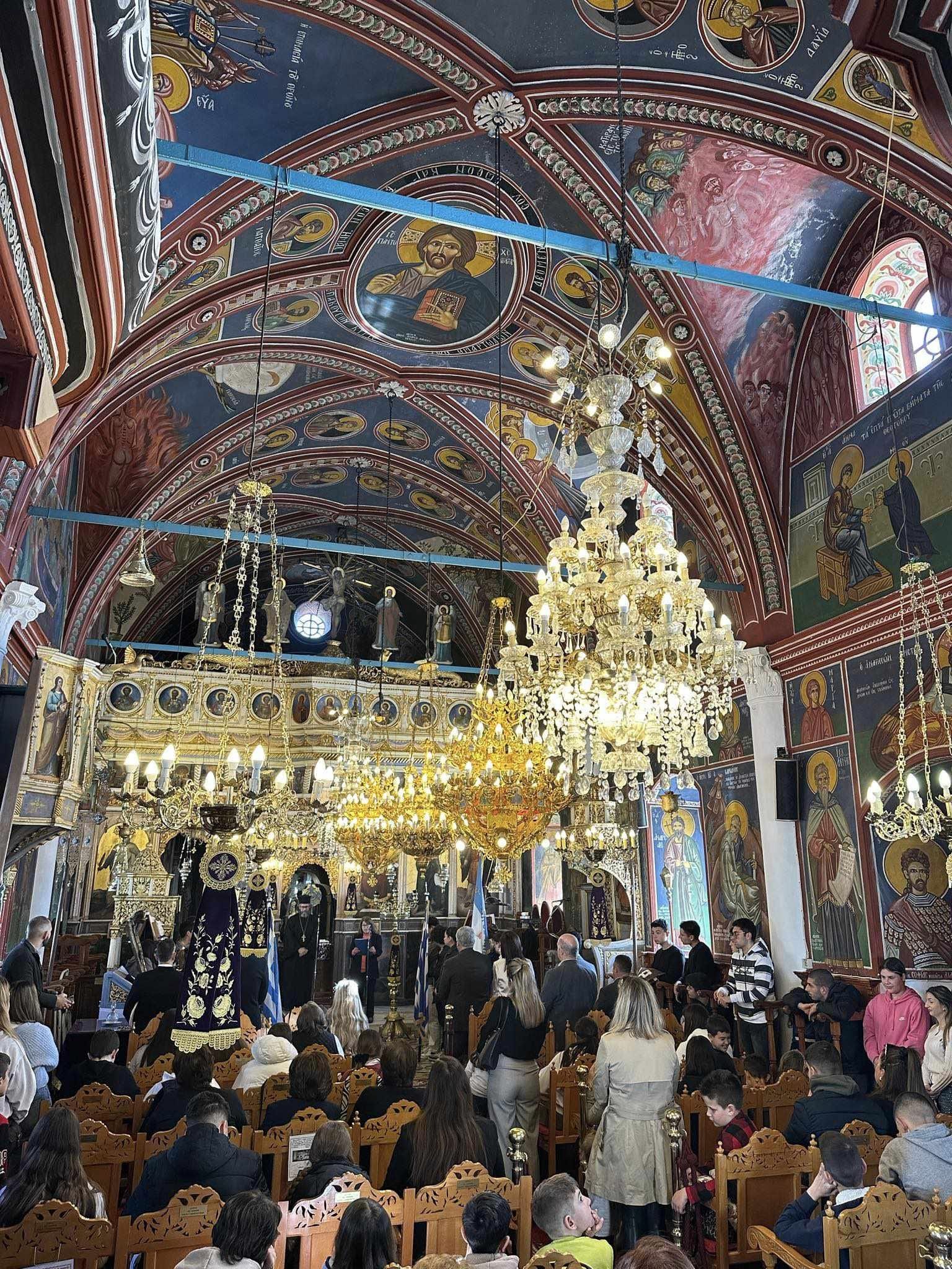 Οι εορταστικές εκδηλώσεις ξεκίνησαν με την Δοξολογία στον Ιερό Μητροπολιτικό Ναό Κοιμήσεως της Θεοτόκου Απερίου παρουσία του Δημάρχου Καρπάθου κ.Μιχάλη Φελλουζή, του Αντιδημάρχου κ.Νίκου Προική, του Δημοτικού Συμβούλου κ.Ιωάννη Χαλκιά, του Προέδρου της Τοπικής Κοινότητας Μενετών κ.Νίκου Καλή, της Προέδρου της Τοπικής Κοινότητας Απερίου κας Πόπης Λαμπρινού Λαδή, του Διοικητή της Αστυνομικής Υποδιεύθυνσης Καρπάθου κ.Παναγιώτη Τσινταλάκη, του Λιμενάρχη Καρπάθου κ.Μιλτιάδη Ζώη, της Προέδρου του Παγκαρπαθιακού συλλόγου Ρόδου κας Ειρήνης Γιάννουστα ,της Προέδρου του Πολιτιστικού και Εξωραϊστικού συλλόγου Απερίου η ΟΜΟΝΟΙΑ κας Σοφίας Οικονομίδου, των Διευθυντών των εκπαιδευτηρίων μας (Λυκείου, Γυμνασίου, Δημοτικού και Νηπιαγωγείου) και πλήθος μαθητών και κόσμου.