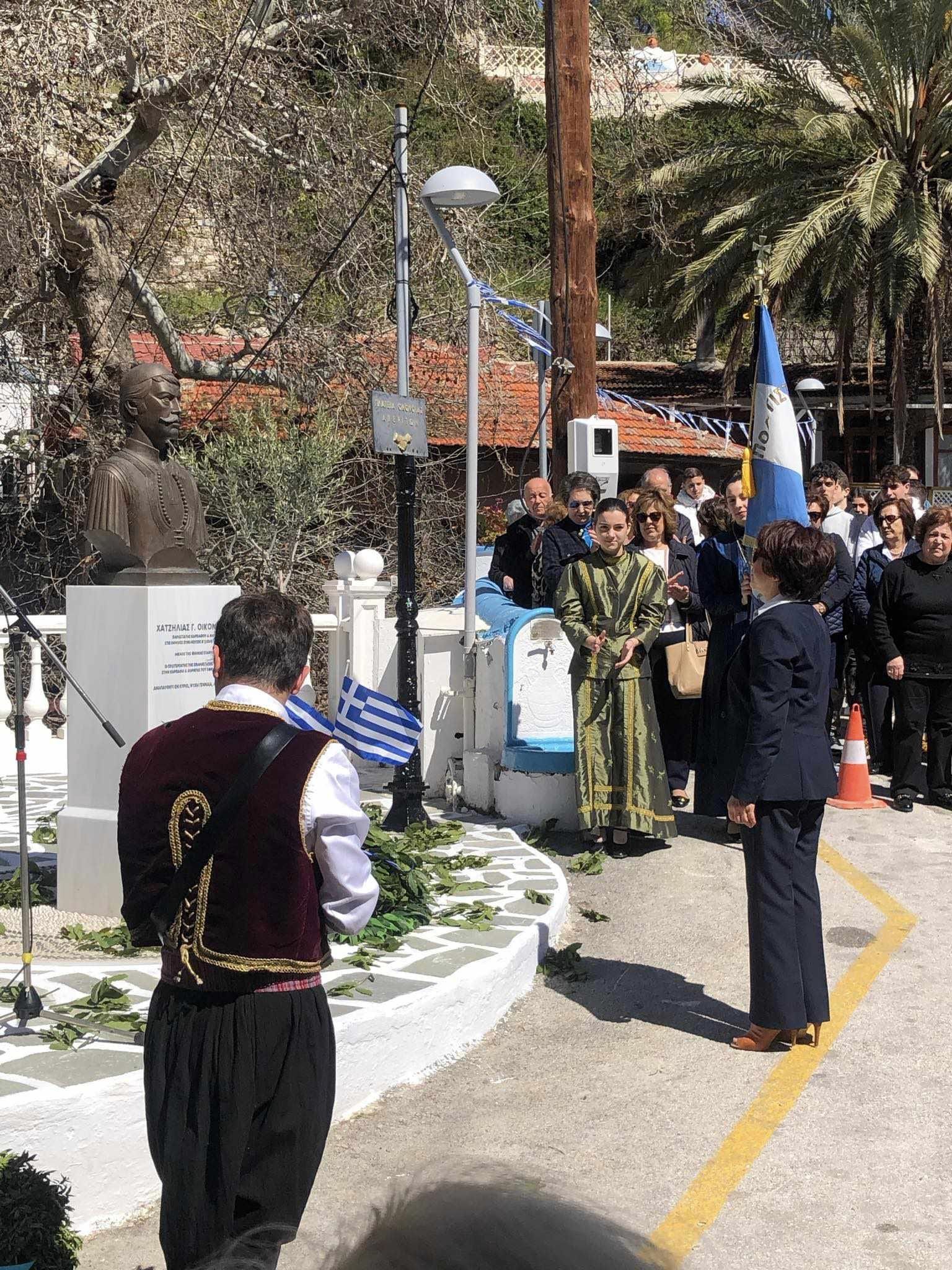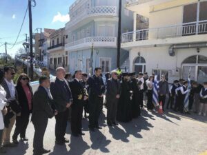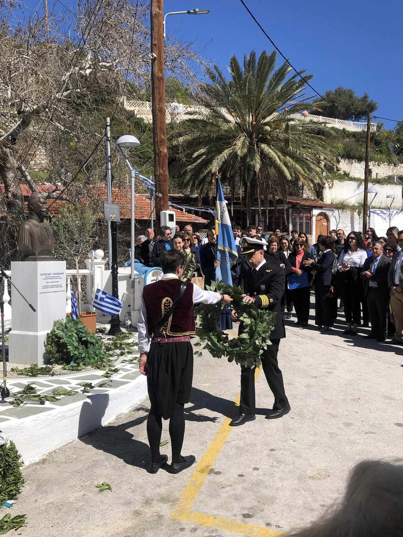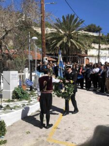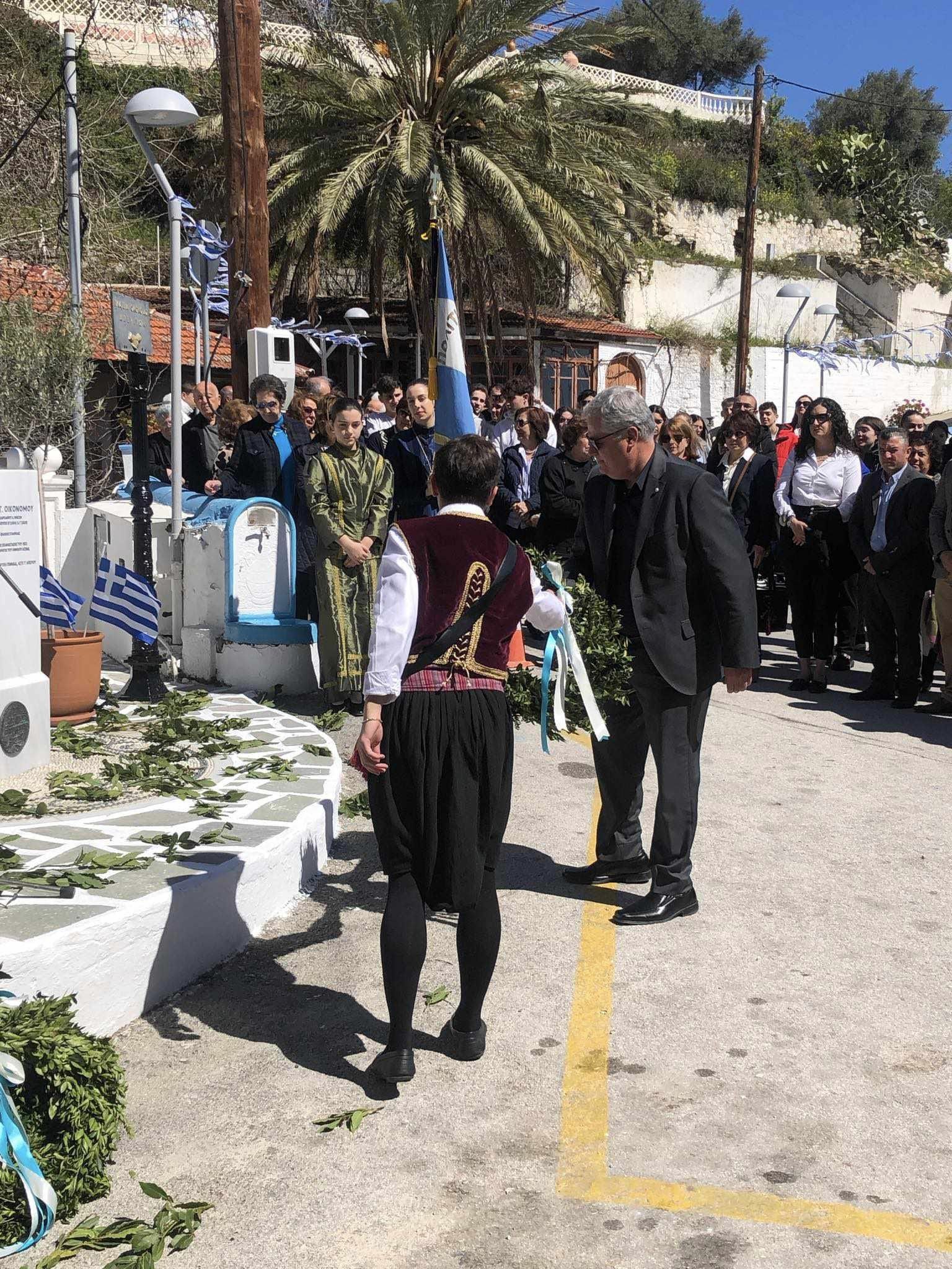 Ακολούθησε επιμνημόσυνη δέηση στο μνημείο του Χατζηλία Οικονόμου, κατάθεση στεφάνων, ομιλία από την εκπαιδευτικό κα Αναστασία Βδοκάκη, πρώην Διευθύντρια Δημοτικού σχολείου Απερίου, εκφώνηση έμμετρης ποίησης από την πρώην εκπαιδευτικό και Πρόεδρο του Παγκαρπαθιακού συλλόγου Ρόδου κ.Ειρήνη Γιάννουστα (στίχοι Φωτεινής Σταματιάδου-Γεργατσούλλη),ποιήματα από παιδιά του Δημοτικού σχολείου Απερίου και ανάκρουση Εθνικού Ύμνου.